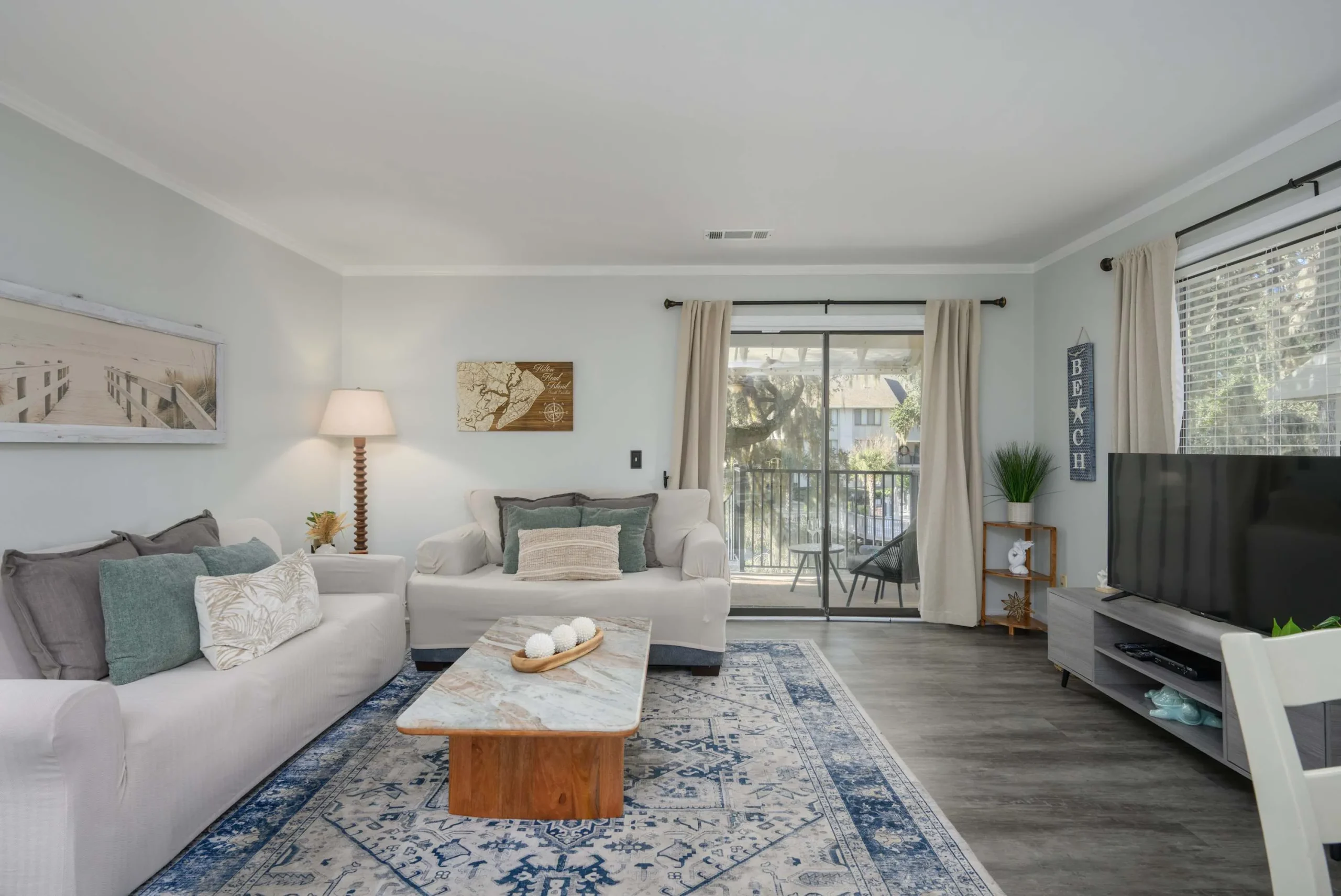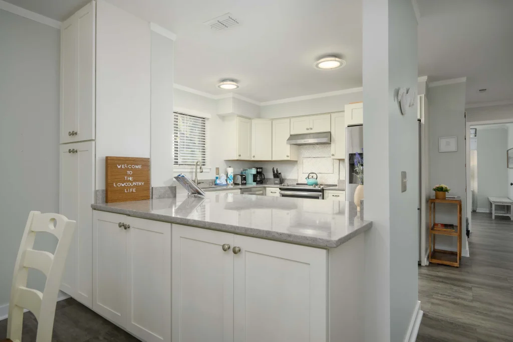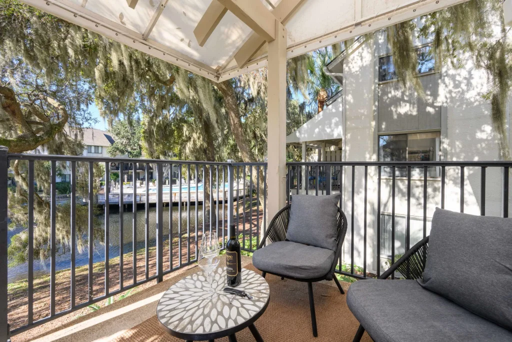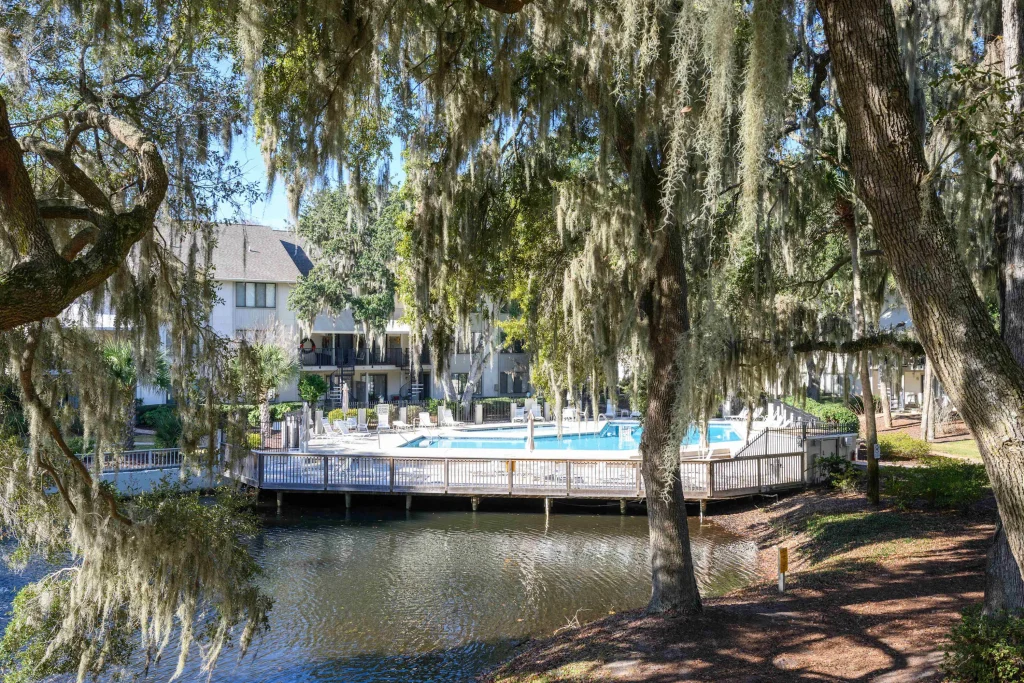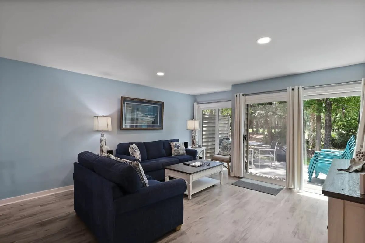 Relax in this Hilton Head retreat offering comfort and convenience. The villa overlooks a garden setting and features access to a sunny outdoor pool. Guests are within a 10-minute walk to Coligny Beach, Celebration Park and Coligny Plaza’s many shops and restaurants. Van Der Meer Tennis Center is across the street, while Shipyard Golf Club and Harbour Town are a short drive away. Perfect for families seeking both relaxation and activity.
