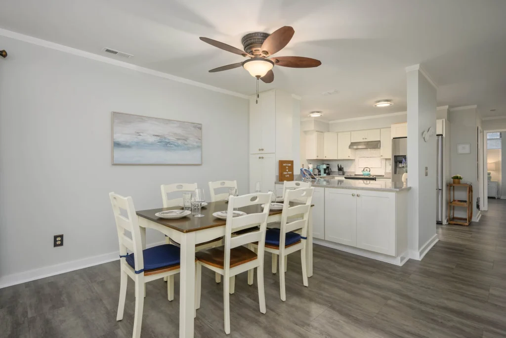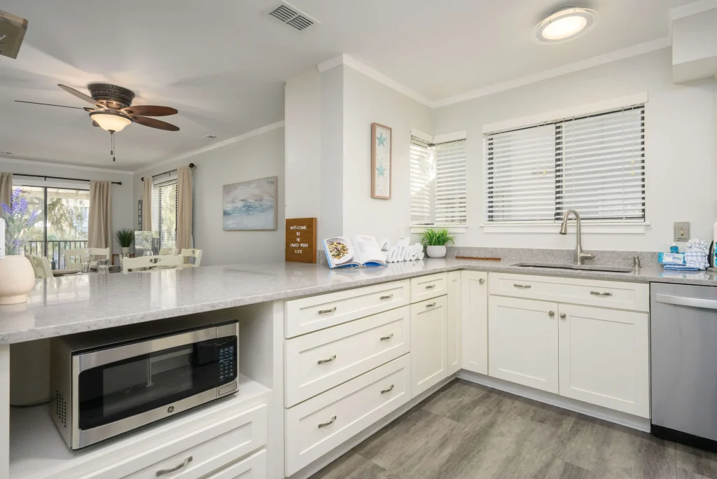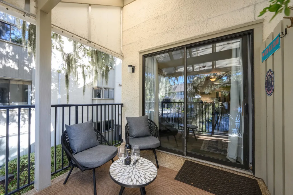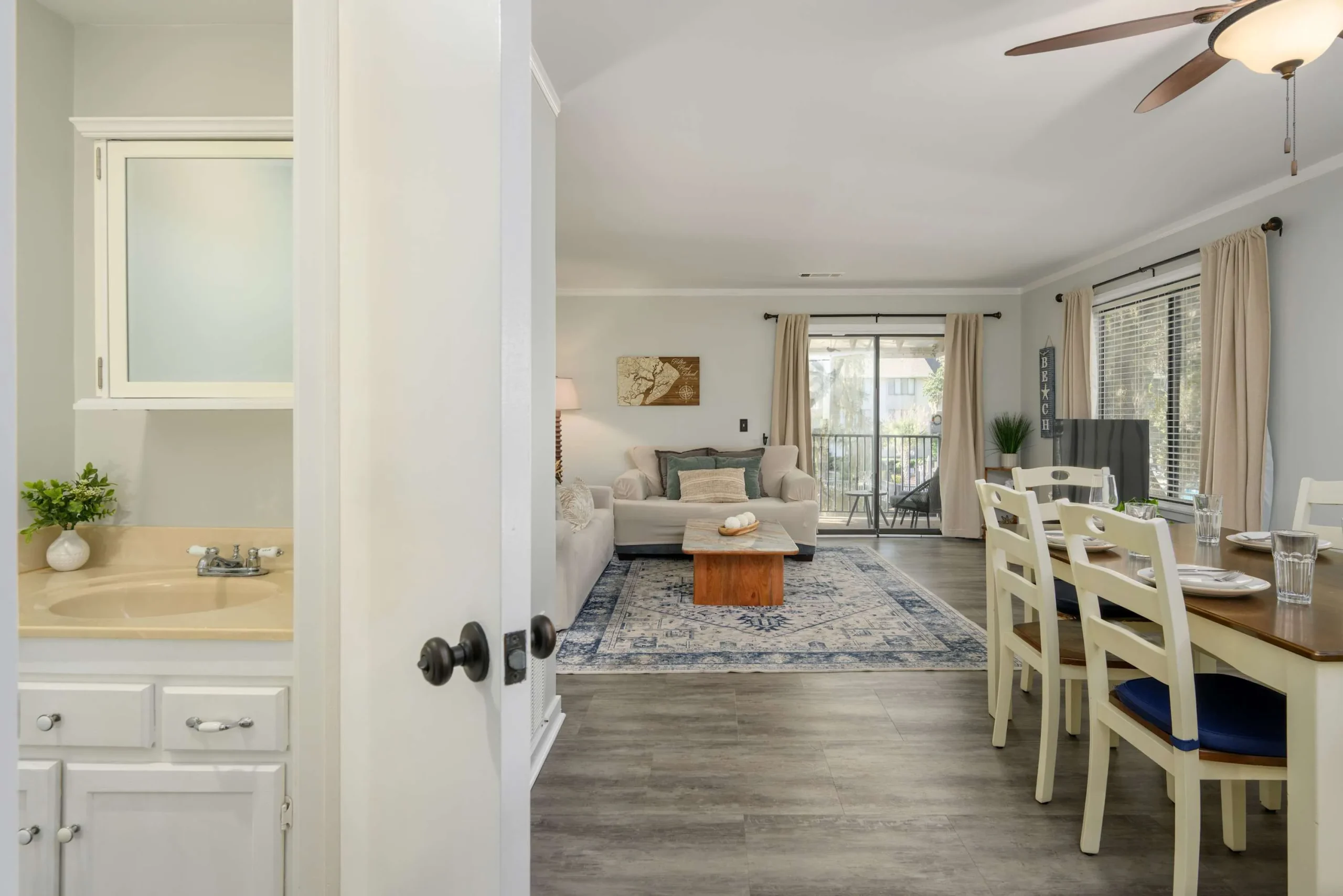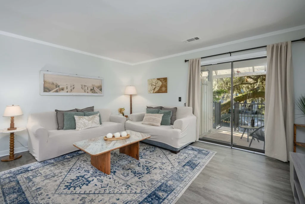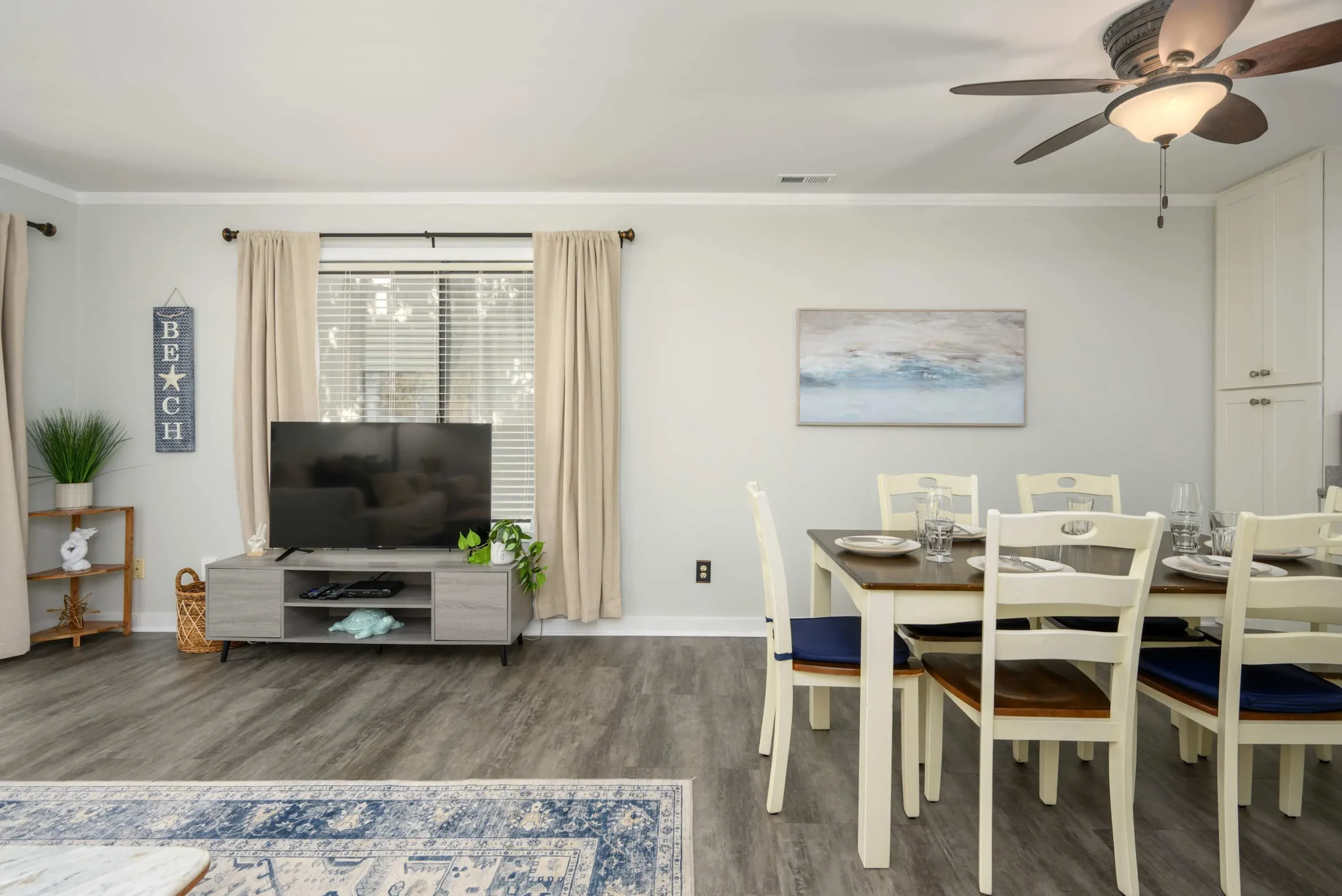 Relax in this Hilton Head retreat offering comfort and convenience. The villa overlooks a garden setting and features access to a sunny outdoor pool. Guests are within a 10-minute walk to Coligny Beach, Celebration Park and Coligny Plaza’s many shops and restaurants. Van Der Meer Tennis Center is across the street, while Shipyard Golf Club and Harbour Town are a short drive away. Perfect for families seeking both relaxation and activity.