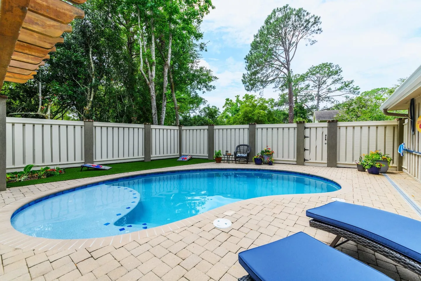 New to the Vacation Rental Market! Spectacular 3-bedroom, 2.5 Bath home just 2 blocks to the beach! Private backyard oasis with heated pool The pool cannot be heated when the temperature falls below 50 degrees. Outdoor kitchen and fireplace. The pool is not heated from December through March.