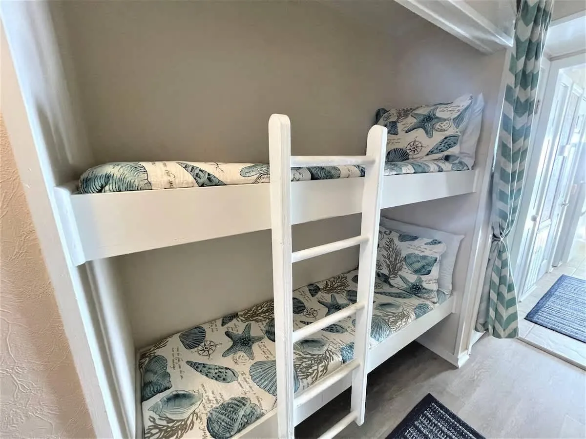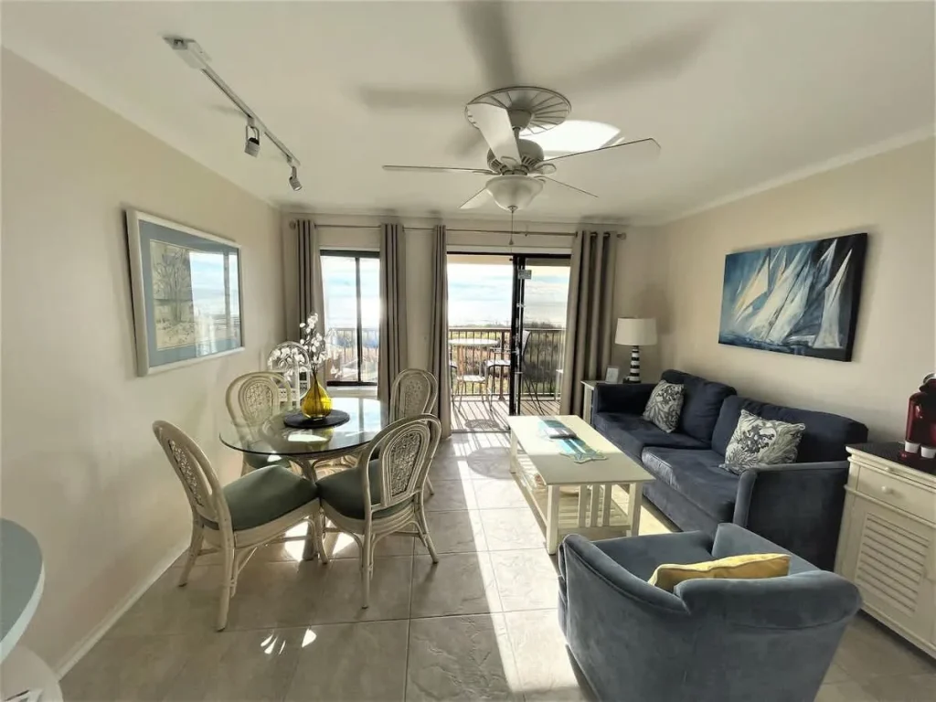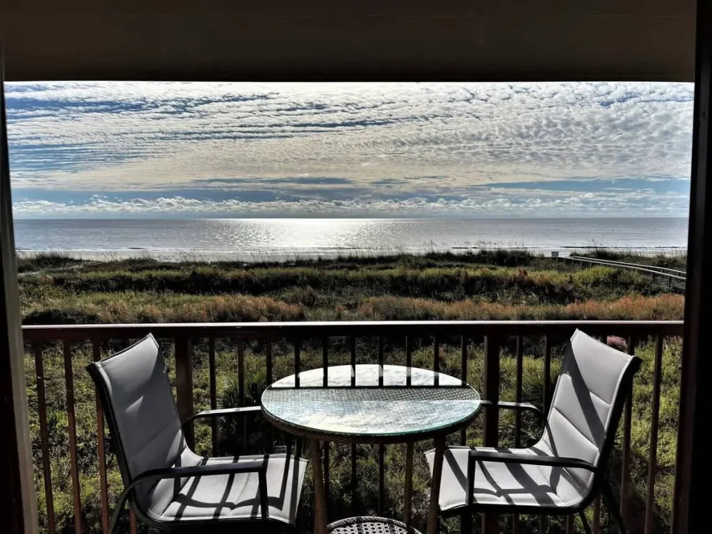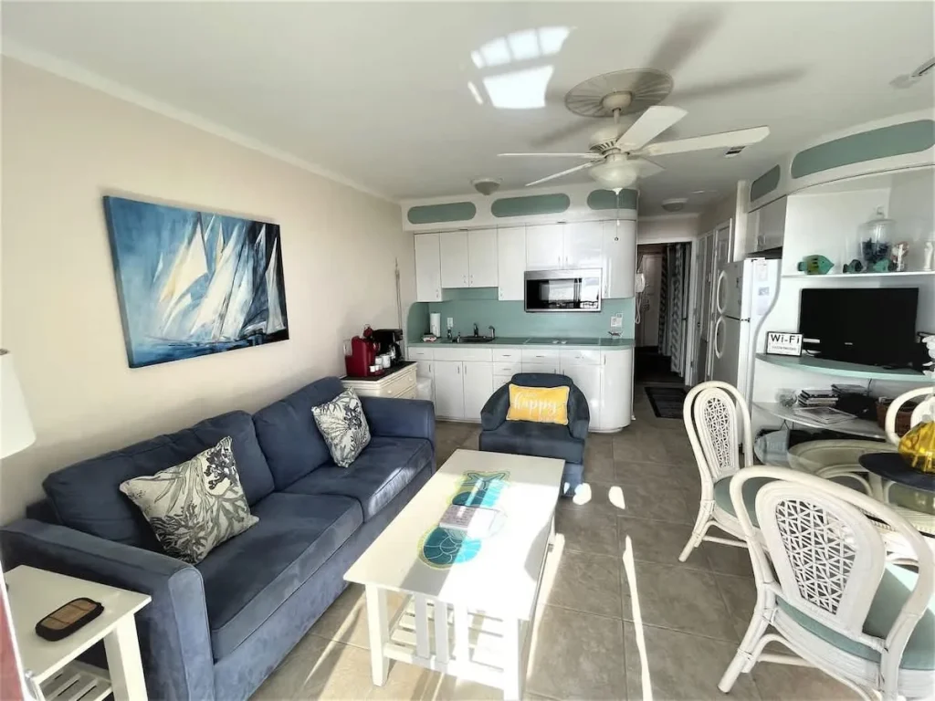 Admiral’s Row Villa 203 is a thoughtfully curated oceanfront retreat designed to immerse you in the coastal lifestyle. The interior features a bright, airy palette that mirrors the Hilton Head shoreline. The primary bedroom offers a restful sanctuary, while the common area provides clever sleeping solutions with both a pull-out sofa and built-in junior bunk beds, making it ideal for families. The kitchen is stocked with essential cookware for preparing meals at home, which can be enjoyed at the dining table or outside on the balcony. The true highlight is the private balcony, positioned to provide front-row seats to the famous South Carolina sunrises and the rhythmic sounds of the tide.