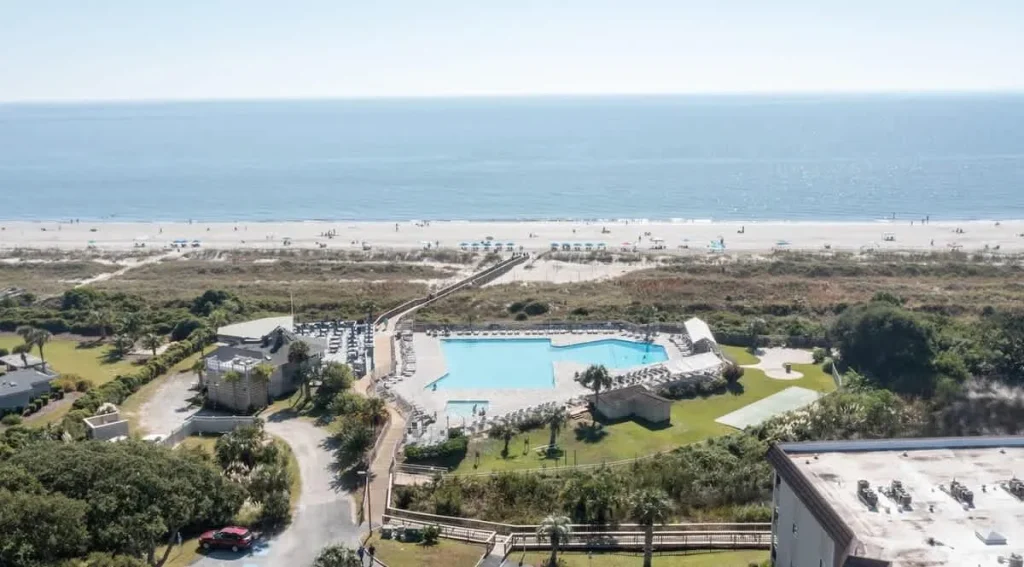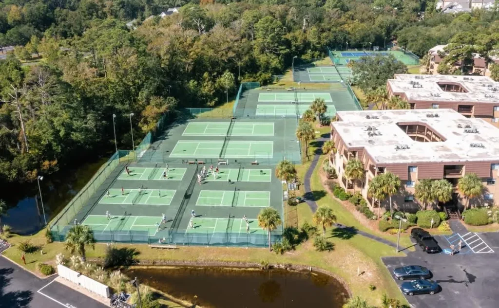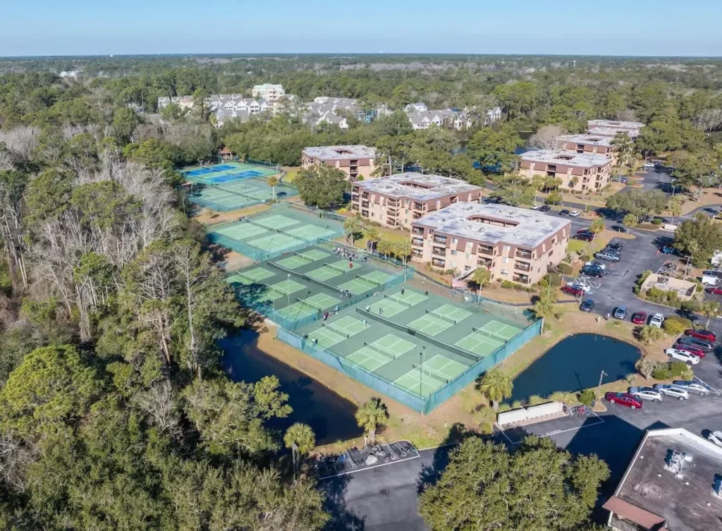 Hilton Head Beach and Tennis Resort offers 2 swimming pools, including the largest beachfront pool on Hilton Head. There are 8 tennis courts and 4 Pickleball Courts for guest enjoyment. The resort has a playground, basketball courts, picnic areas with charcoal grills, and bike rentals for family fun!! There are 2 restaurants on site for close by dining or beachside eating.