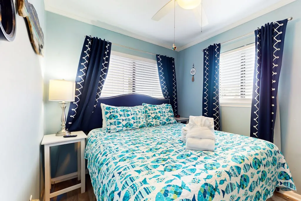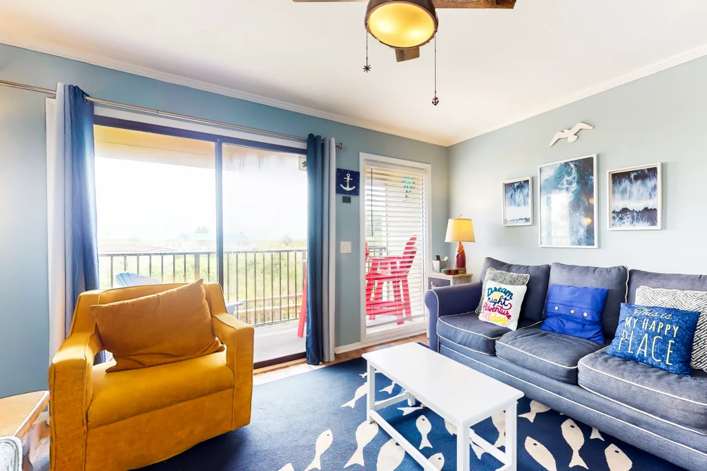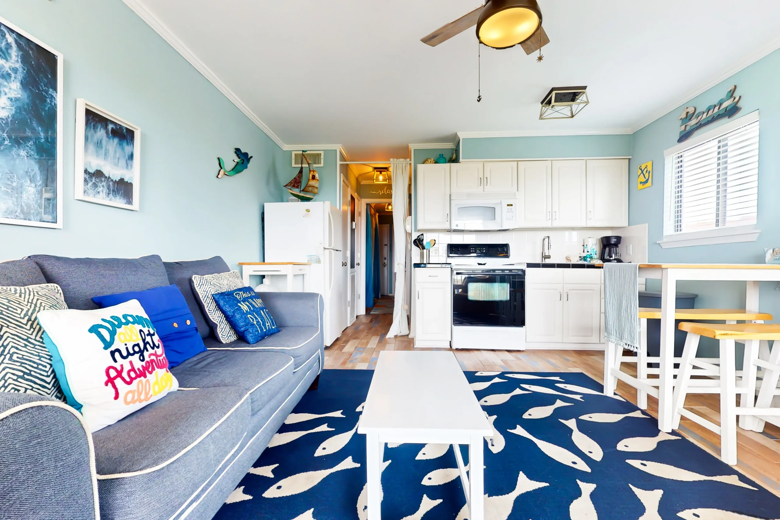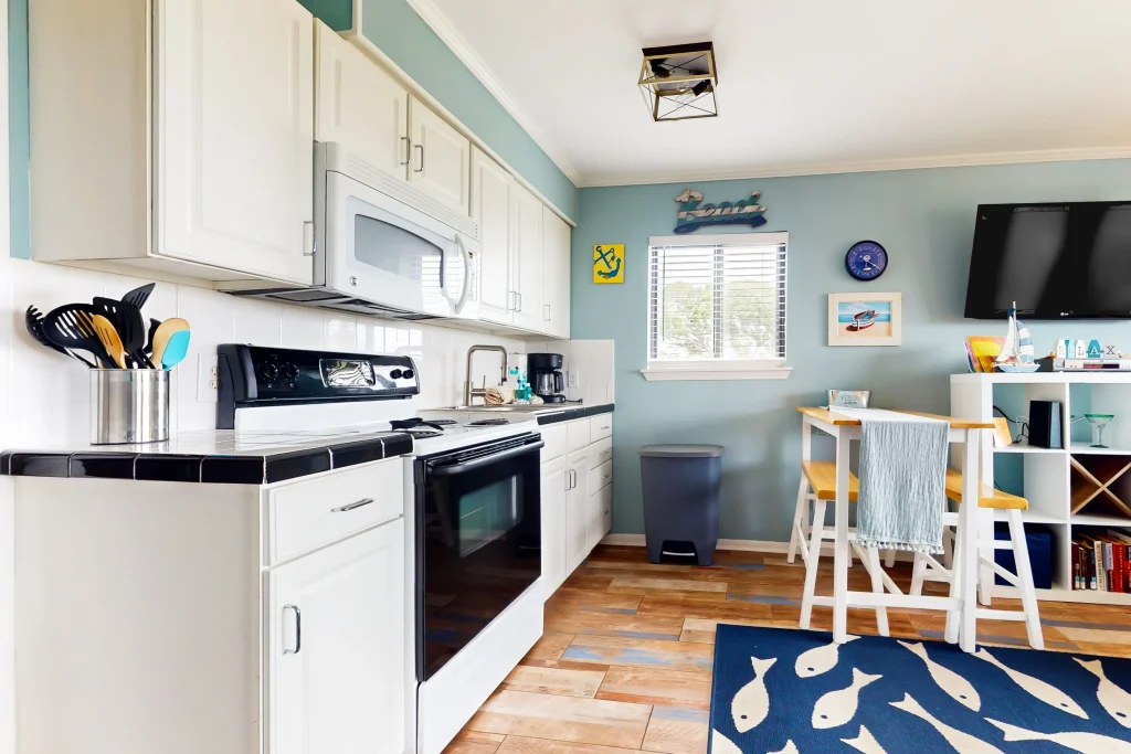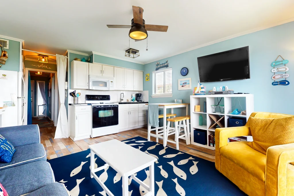 Inside the condo, you’ll find a comfortable living space with a sofa bed, central air-conditioning, and WiFi. The balcony offers a peaceful spot to enjoy your morning coffee and watch the sunrise over the water. The well-equipped kitchen features modern appliances, including a fridge, stove, oven, microwave, and coffee maker, making meal preparation a breeze.