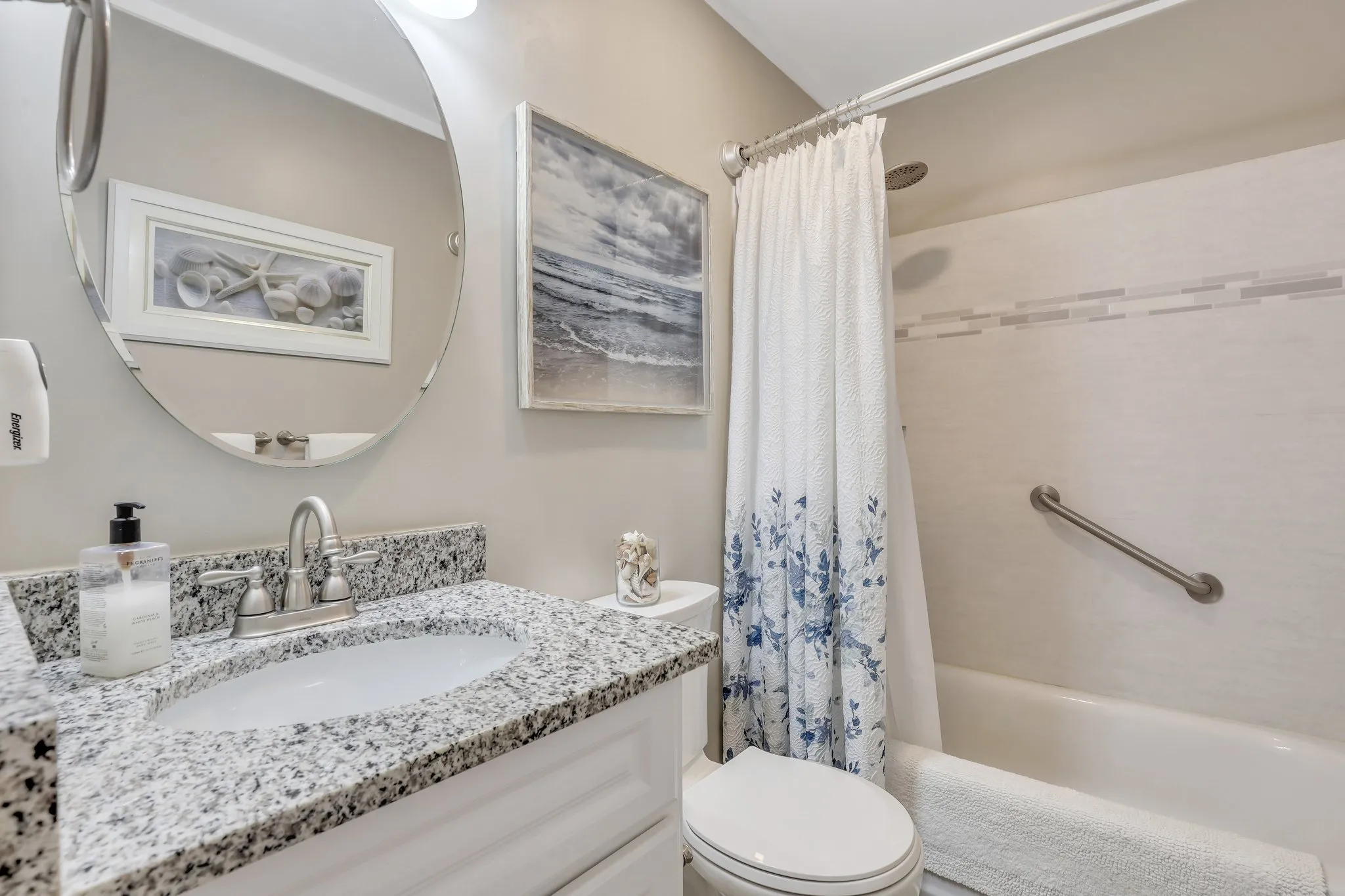 There are drinks and food at the poolside cafe, pizza and a sports pub are located at conference center. Bike rentals right at the Resort, and the ice cream stand is open seasonal. Lots of public golf nearby, tennis courts and pickleball on site, Largest beach front pool on Hilton Head, a workout room and playground. Washers and Dryers on site in building, and an elevator close by. This is a gated resort with 24-hour security and on-site check -in.