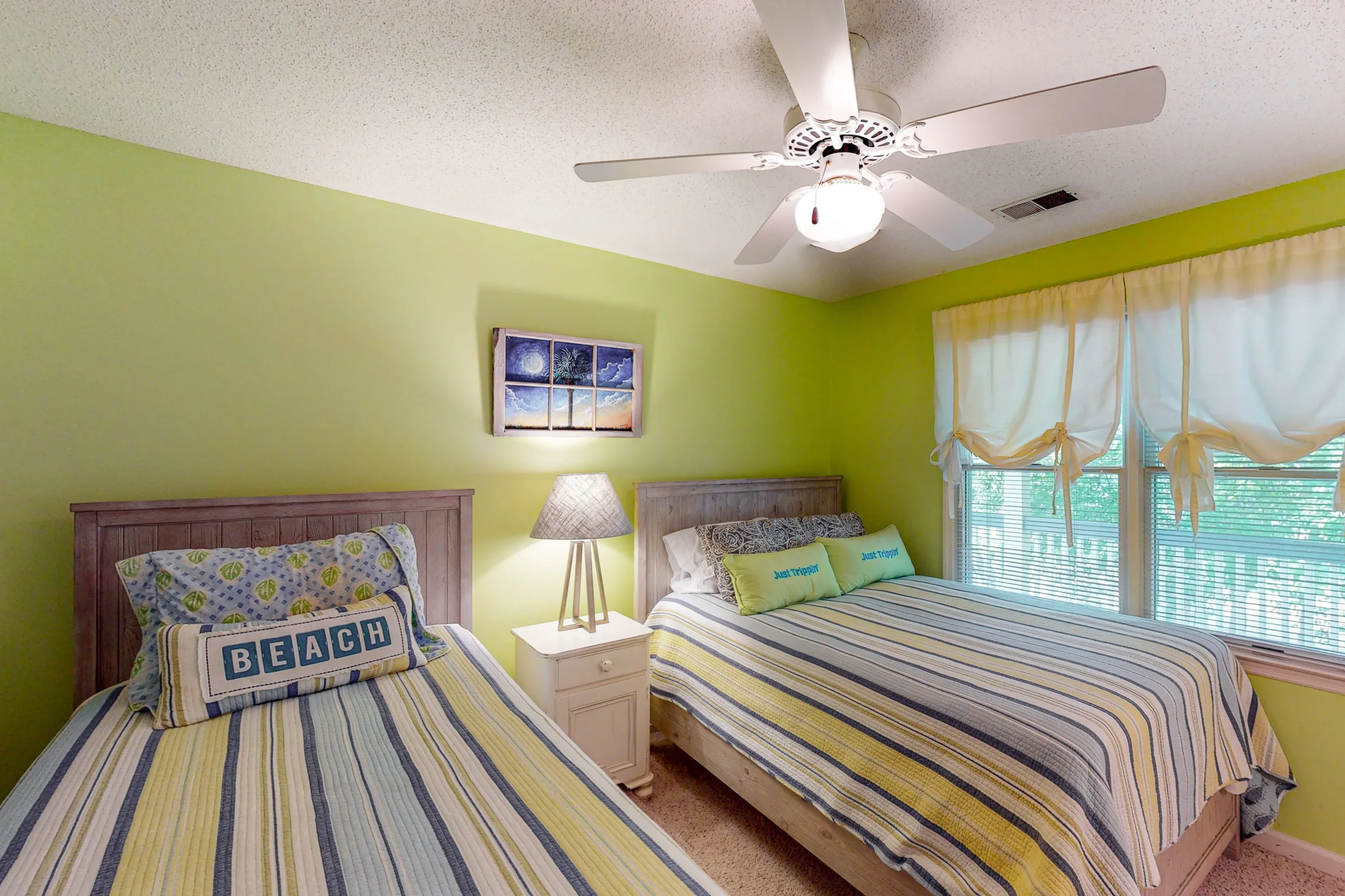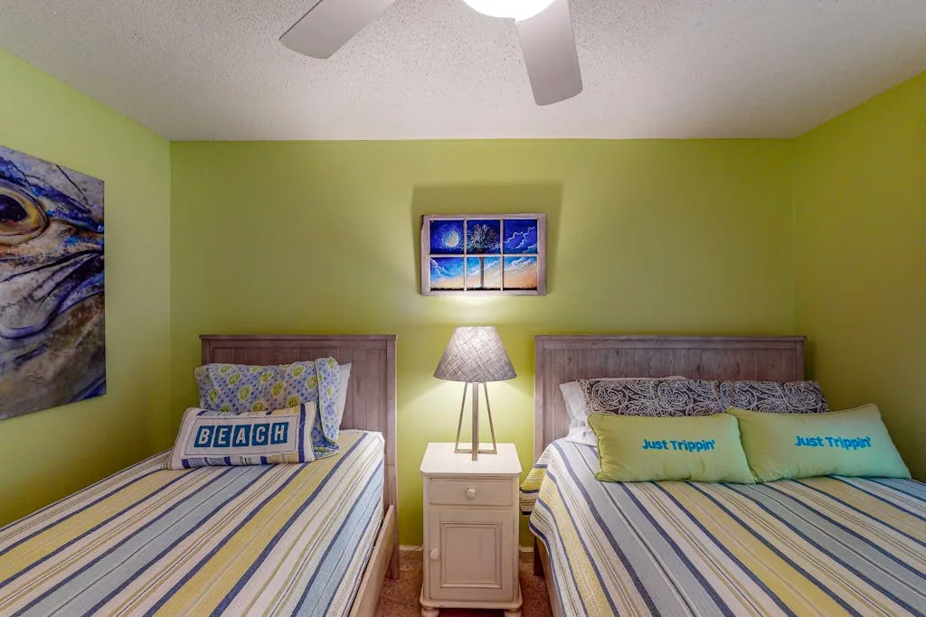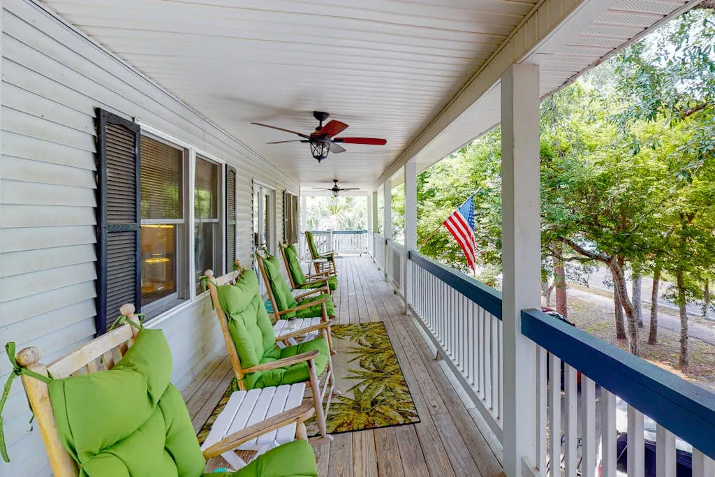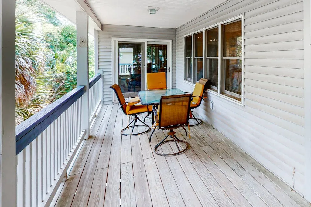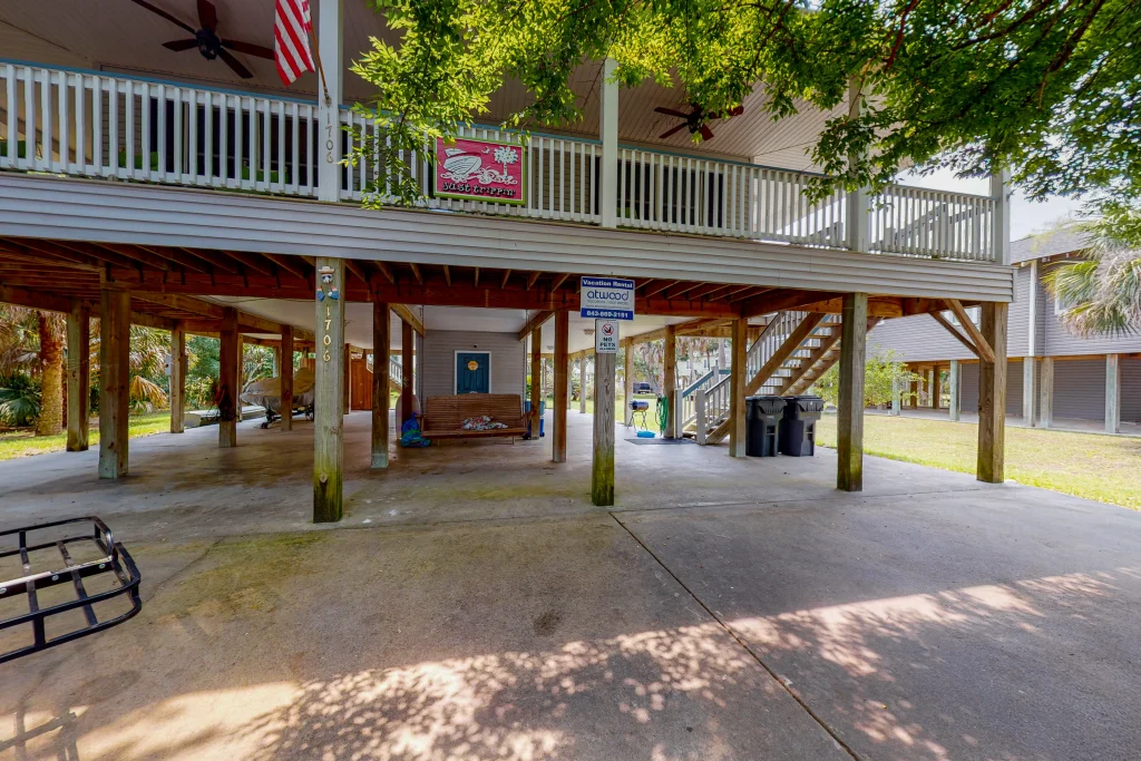 Your wish for a beautiful vacation home has come true. Just Trippin’ will satisfy your expectations for a quality place to call home during your getaway to beautiful Edisto Beach. From the charming decor to a fabulously well-equipped kitchen, no detail has been overlooked to ensure that your experience is memorable and carefree. Take a seat in one of the rocking chairs on the covered deck and let the roar of the ocean waves tran
