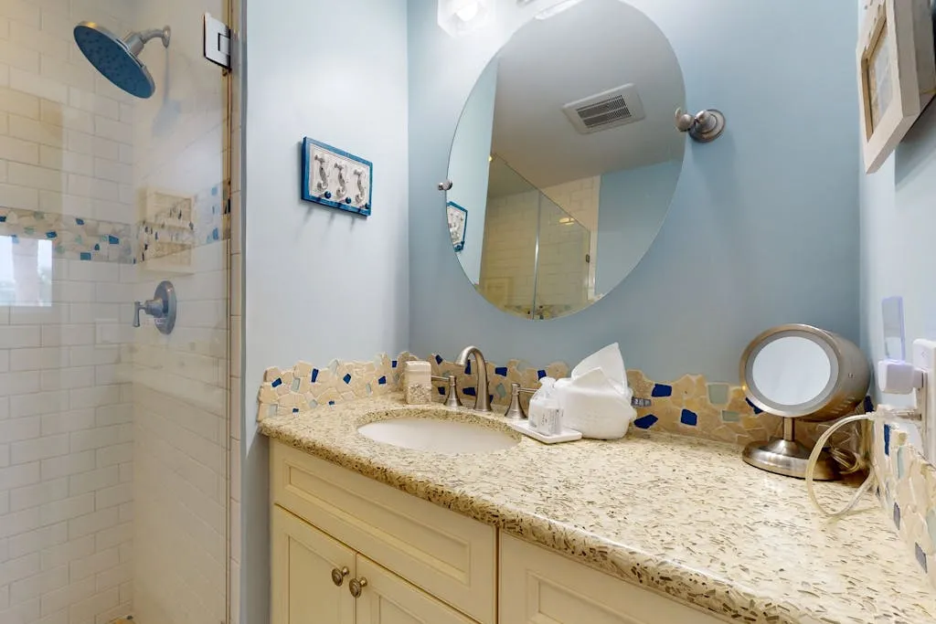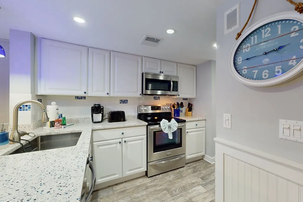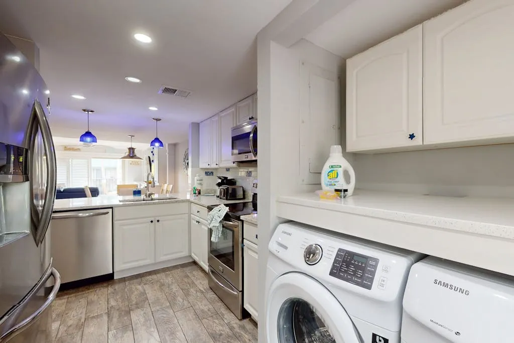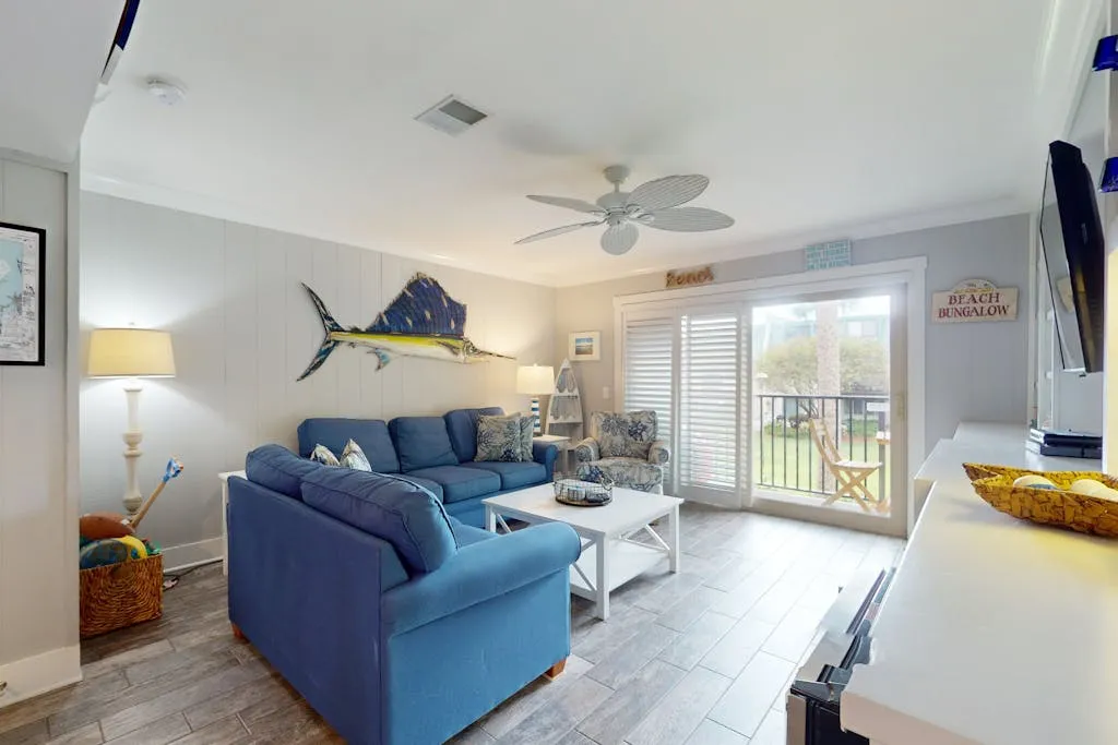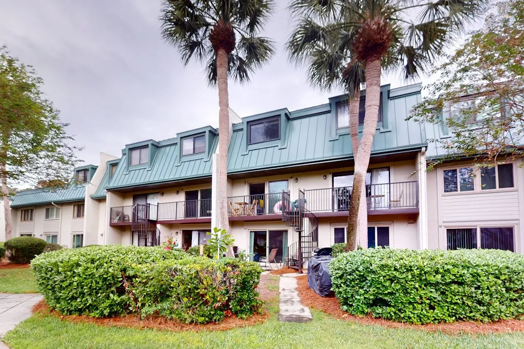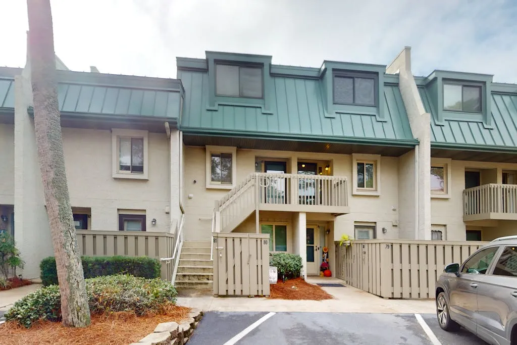 Experience modern comfort and convenience at this updated two-bedroom, two-and-a-half-bath beach condo in Hilton Head, SC. The main level features stylish furnishings and a fully equipped kitchen with stainless steel appliances, sleek cabinets, granite countertops, and a generous breakfast bar. Step out onto the deck overlooking beautifully landscaped grounds and a pool, or relax in the spacious living room. A half bath off the dining