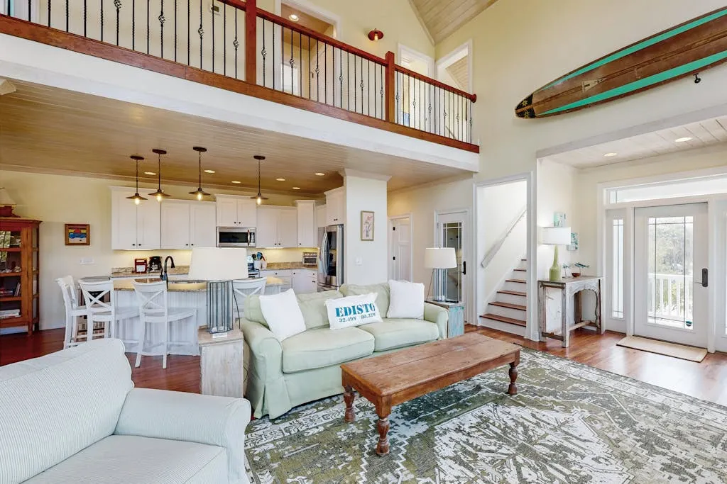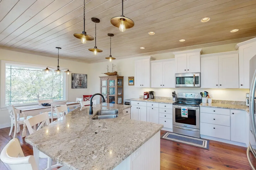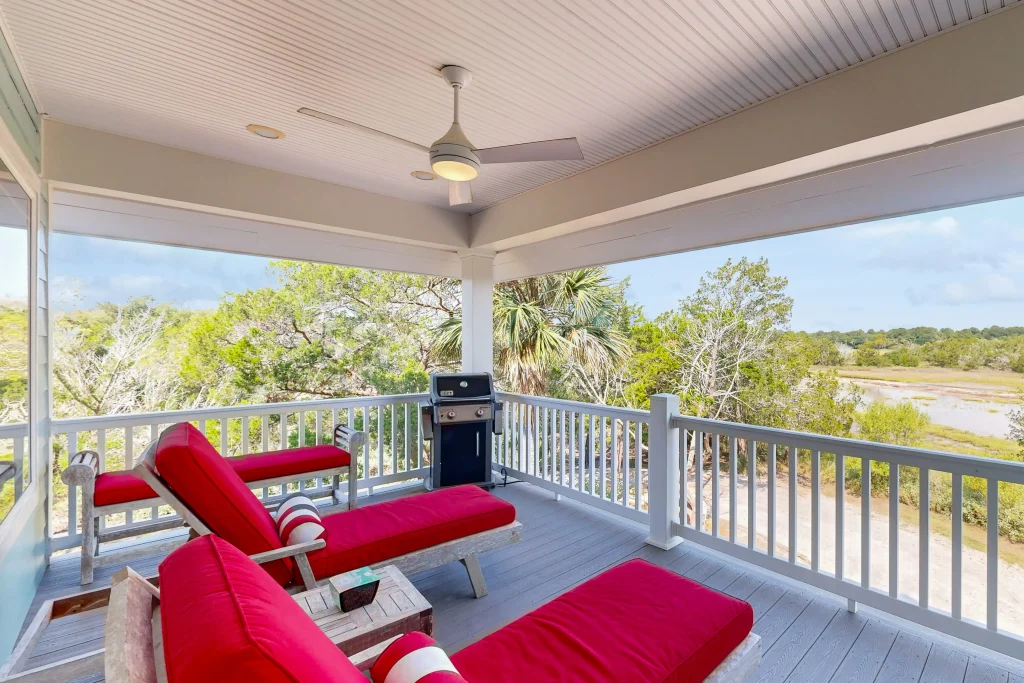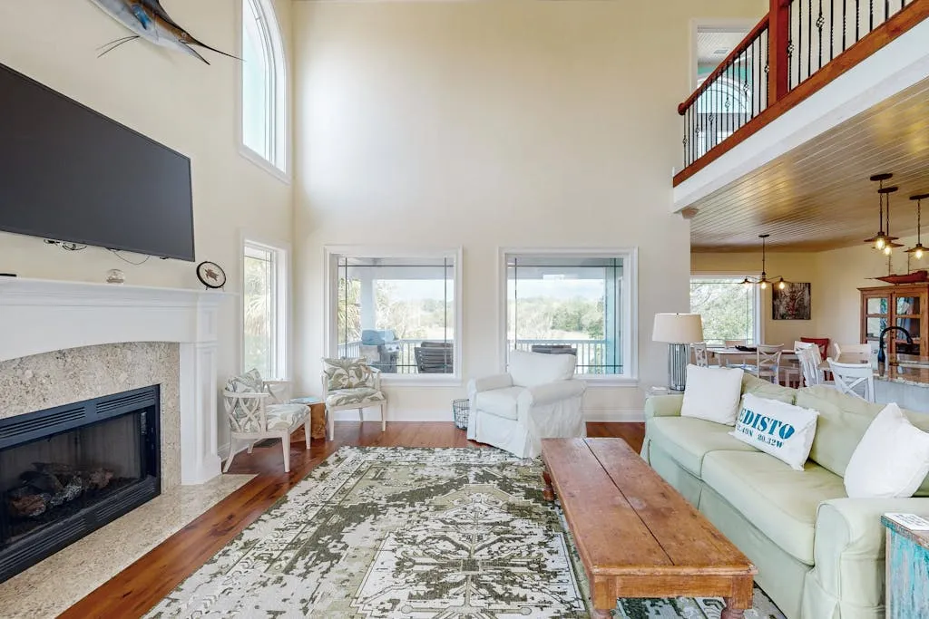Experience lowcountry living at its finest in this beautiful house with stunning marsh views. This spacious home features a master bedroom and bathroom on the first floor, complete with a sitting area, TV, and large windows offering breathtaking marsh vistas. The open floor plan and gourmet kitchen with granite countertops make this the perfect retreat for relaxation and entertainment.