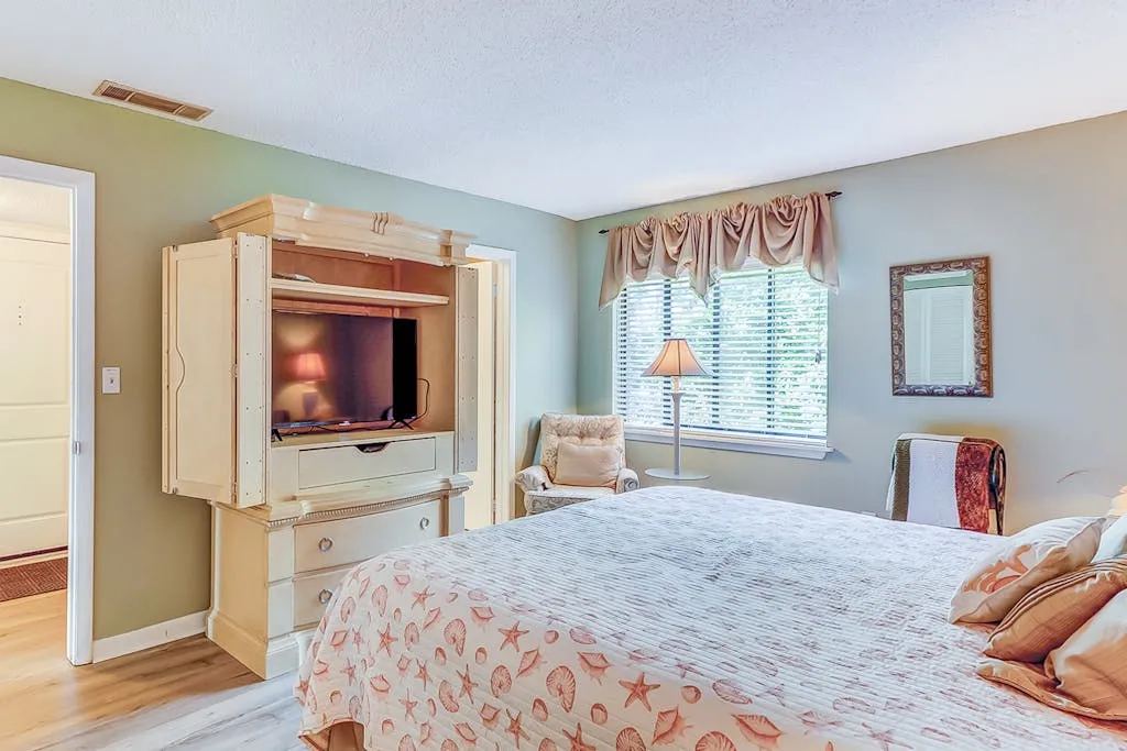 With fishing lagoons, bike rentals, lawn games, and more, the Island Club will appeal to both children and adults. Book this comfortable one-bedroom condo today for a relaxing vacation on Hilton Head Island today!