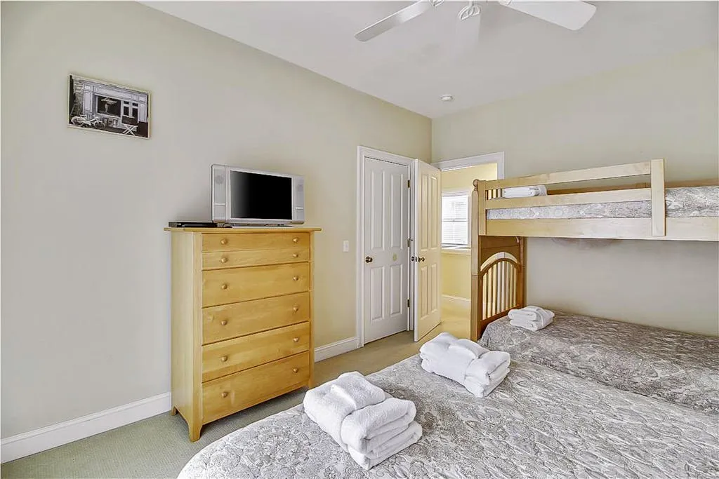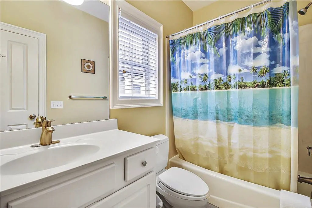 The expansive floor plan features five bedrooms, four full baths, and a half bath. Enjoy a soak in the jetted tub after fun-filled days on the shore. Additional perks include central AC, six TVs, a washer/dryer, and free WiFi. A two-car garage adds convenience to your stay.