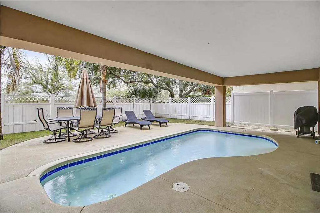 Find the perfect group getaway at this family-friendly beach home, located just a half-mile from the beach. You’ll love the palm-studded backyard, highlighted by a covered private pool. Fire up the gas grill for an afternoon cookout, then dine al fresco poolside!