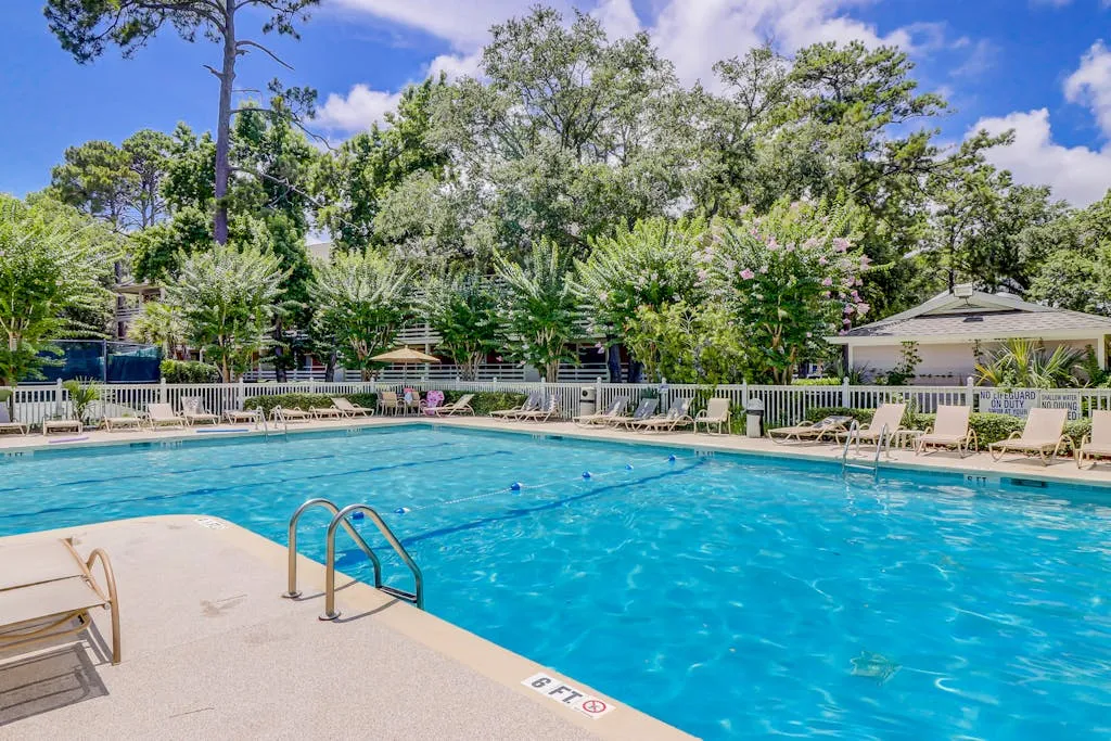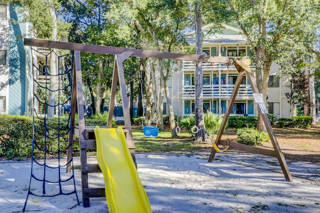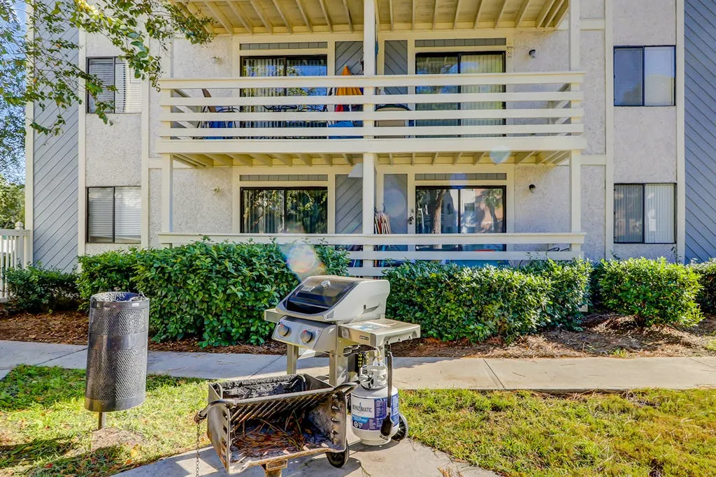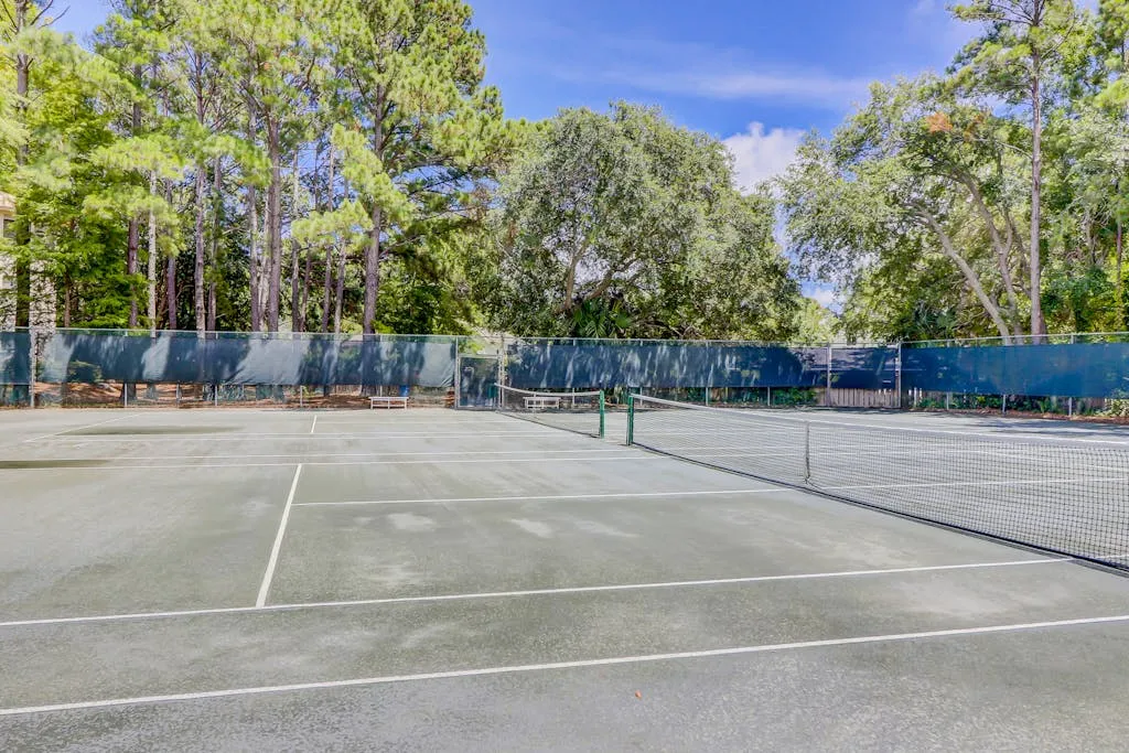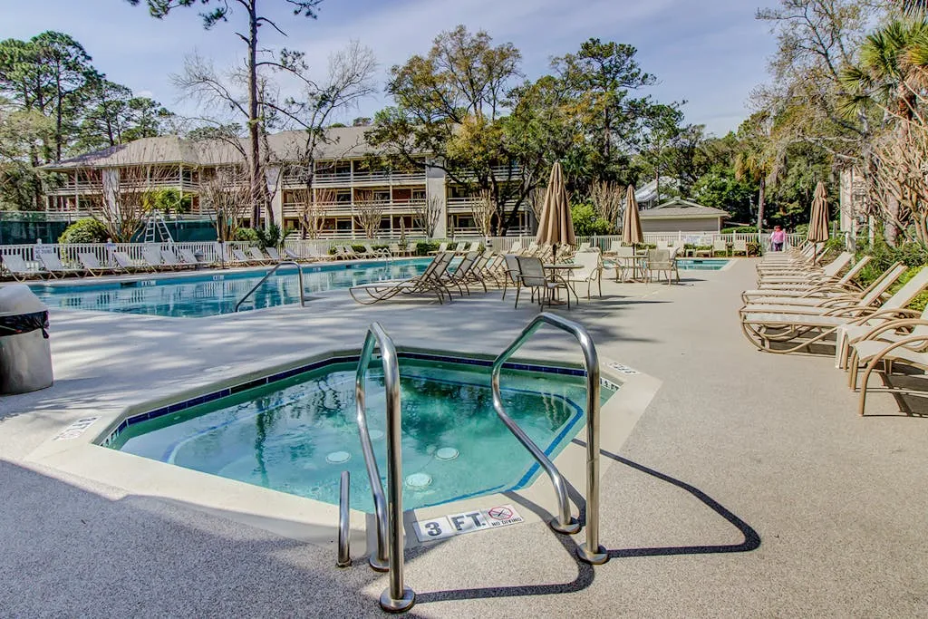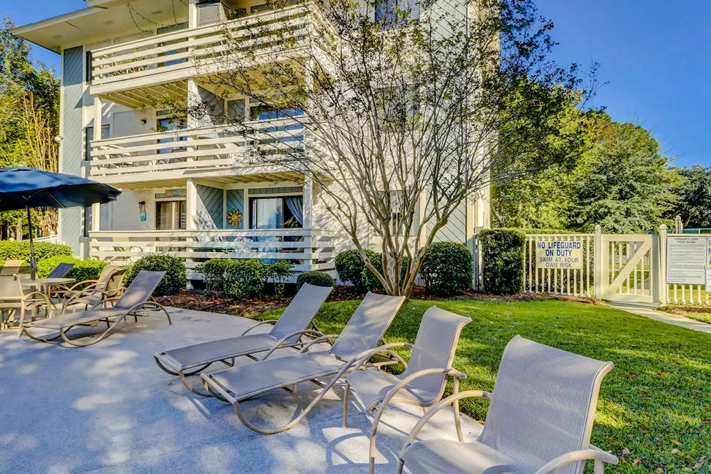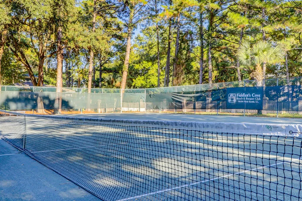 Make your vacation perfect with an island getaway in the Fiddlers Cove Complex. This two-bedroom, two-bathroom retreat offers a comfortable relaxing environment to spend your vacation right on Hilton Head Island. The kitchen is equipped with all major appliances and plenty of cabinets and counter space. The living and dining areas are connected providing the perfect space to commune with family and guests whether you want to watch tv or sit and chat at the table over a delicious meal. The bright colors and open atmosphere of the condo provide the perfect beach feel you will be looking for vacationing on our beautiful island. If at the end of the day you want to kick back and relax in the fresh Carolina on the outdoor balcony or go swimming in the community pool, you’ll have plenty of options for tranquility! This condo has everything friends and family need to enjoy a stress-free vacation! Additional amenities include two outdoor pools (small and large pools), a community hot tub, tennis courts, and a game room with a Ping-Pong table.