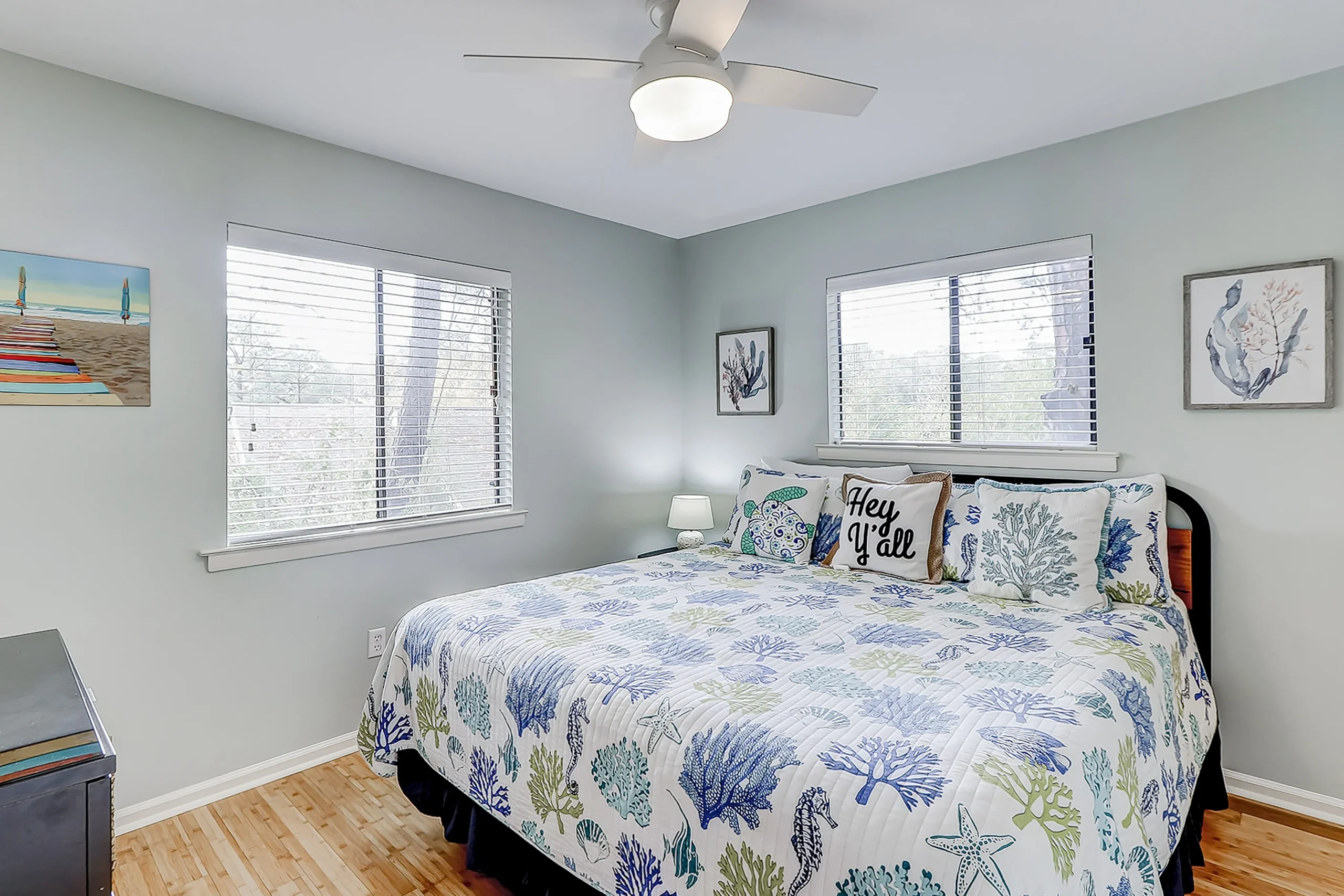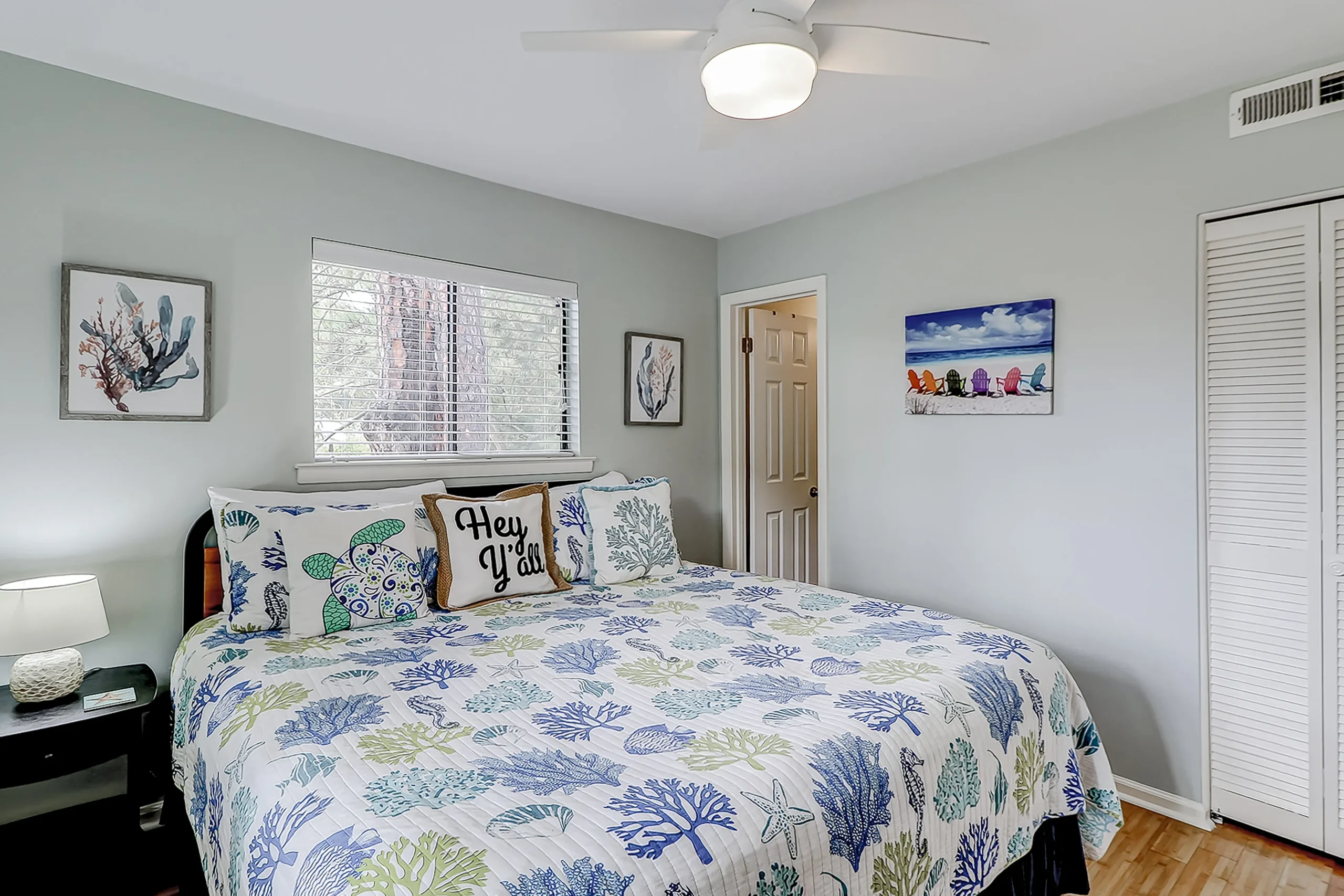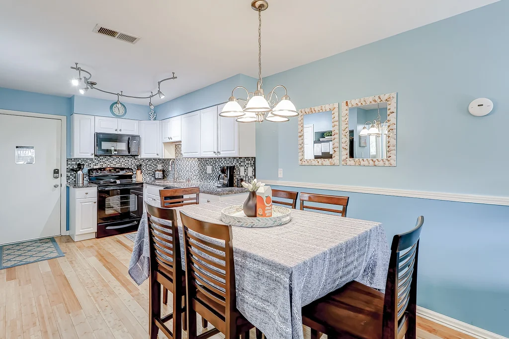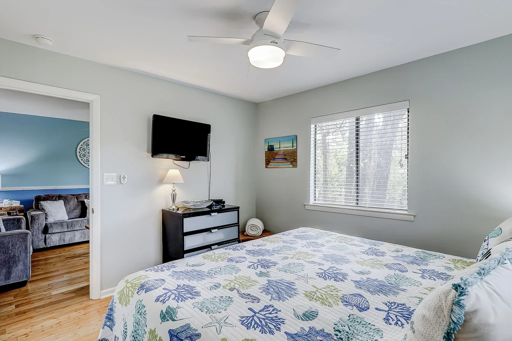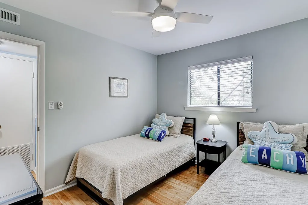 Make your vacation perfect with an island getaway in the Fiddlers Cove Complex. This two-bedroom, two-bathroom retreat offers a comfortable relaxing environment to spend your vacation right on Hilton Head Island. The kitchen is equipped with all major appliances and plenty of cabinets and counter space. The living and dining areas are connected providing the perfect space to commune with family and guests whether you want to watch tv or sit and chat at the table over a delicious meal. The bright colors and open atmosphere of the condo provide the perfect beach feel you will be looking for vacationing on our beautiful island. If at the end of the day you want to kick back and relax in the fresh Carolina on the outdoor balcony or go swimming in the community pool, you’ll have plenty of options for tranquility! This condo has everything friends and family need to enjoy a stress-free vacation! Additional amenities include two outdoor pools (small and large pools), a community hot tub, tennis courts, and a game room with a Ping-Pong table.