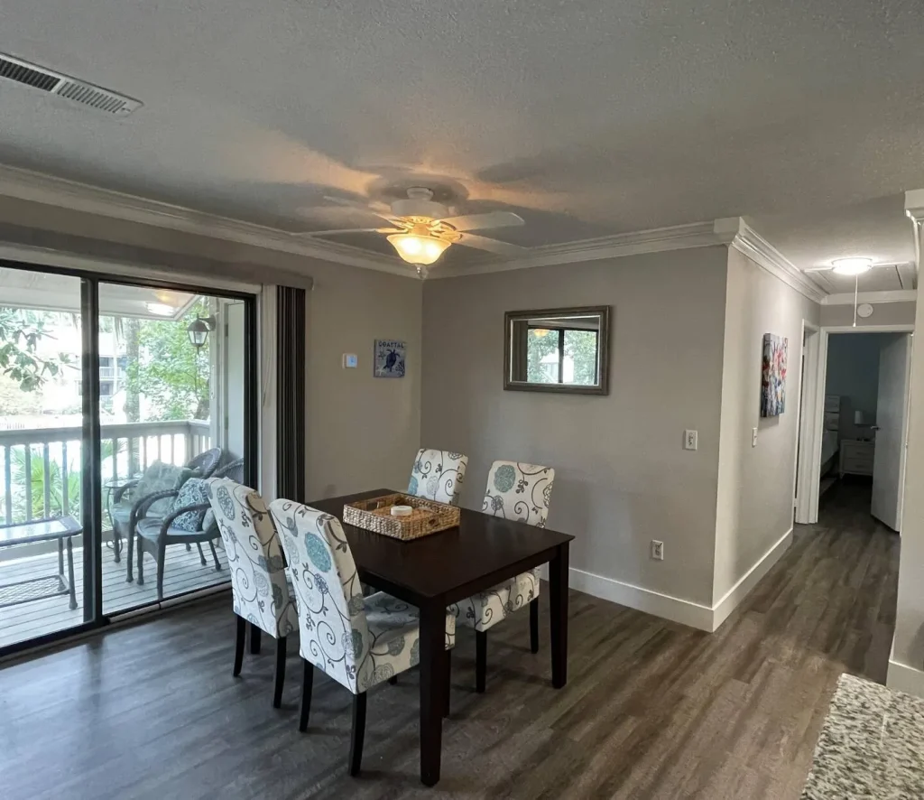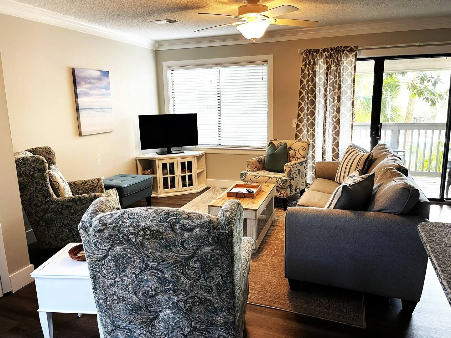 Perfect family vacation retreat at this 2nd level, top floor South Forest Beach villa! Not far from shopping, restaurants, and beach at Coligny! Enjoy a glass wine on the deck overlooking the resort pool. Contact us for Snowbird Pricing!