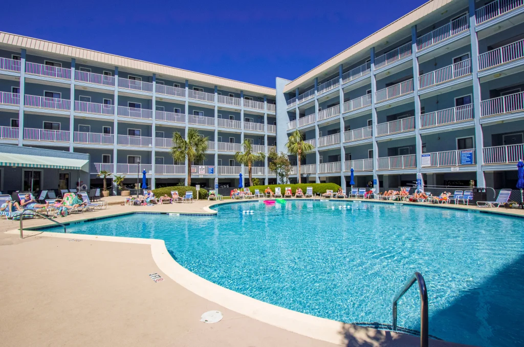 The resort sits alongside the Robert Trent Jones Golf Course on Hilton Head Island, with grounds that include private boardwalk access to Singleton Beach. On-site amenities include indoor and outdoor swimming pools, an indoor hot tub, a fitness ce
