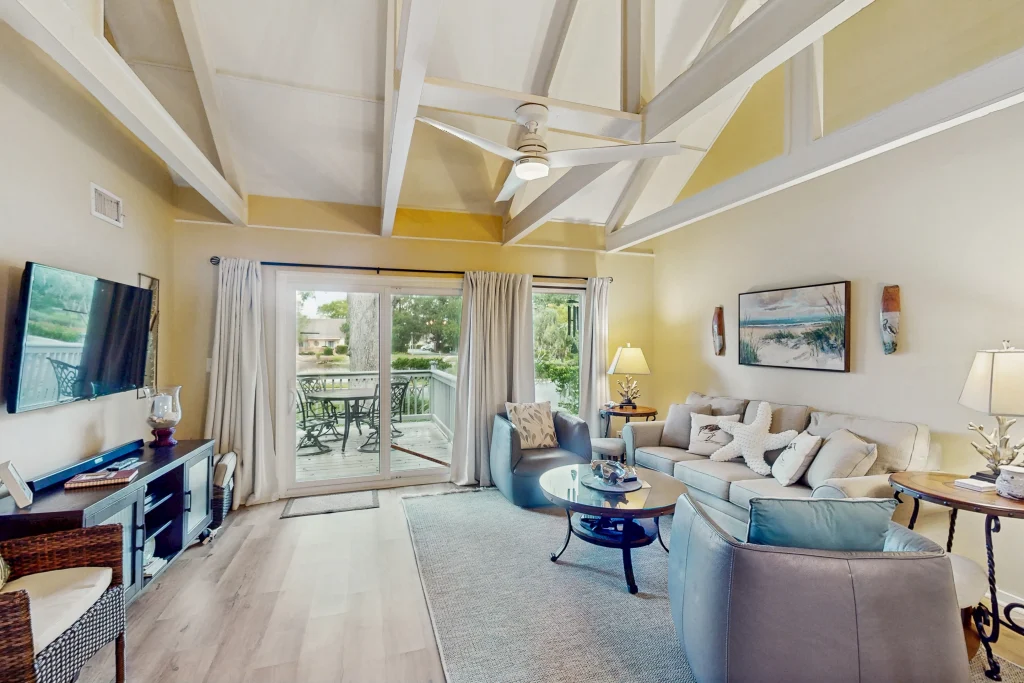 This vacation rental is right in the heart of the world-class Palmetto Dunes resort, a gated community situated mid-island within a mile of dining, shopping, and a host of marina activities available at Shelter Cove. You’ll have direct access to three world-class golf courses (additional fees required), an award-winning tennis center, and an 11-mile interconnected lagoon system for canoeing and kayaking. And when you want to hit the beaches, this condo is a short drive or even walk from some of the best beaches on the island.