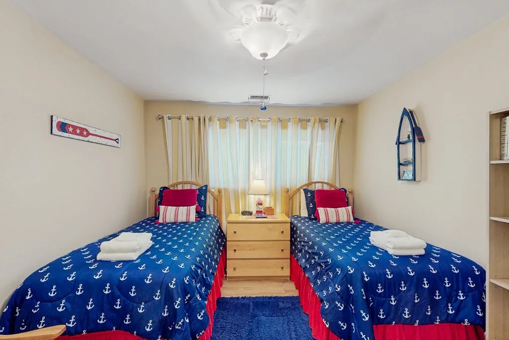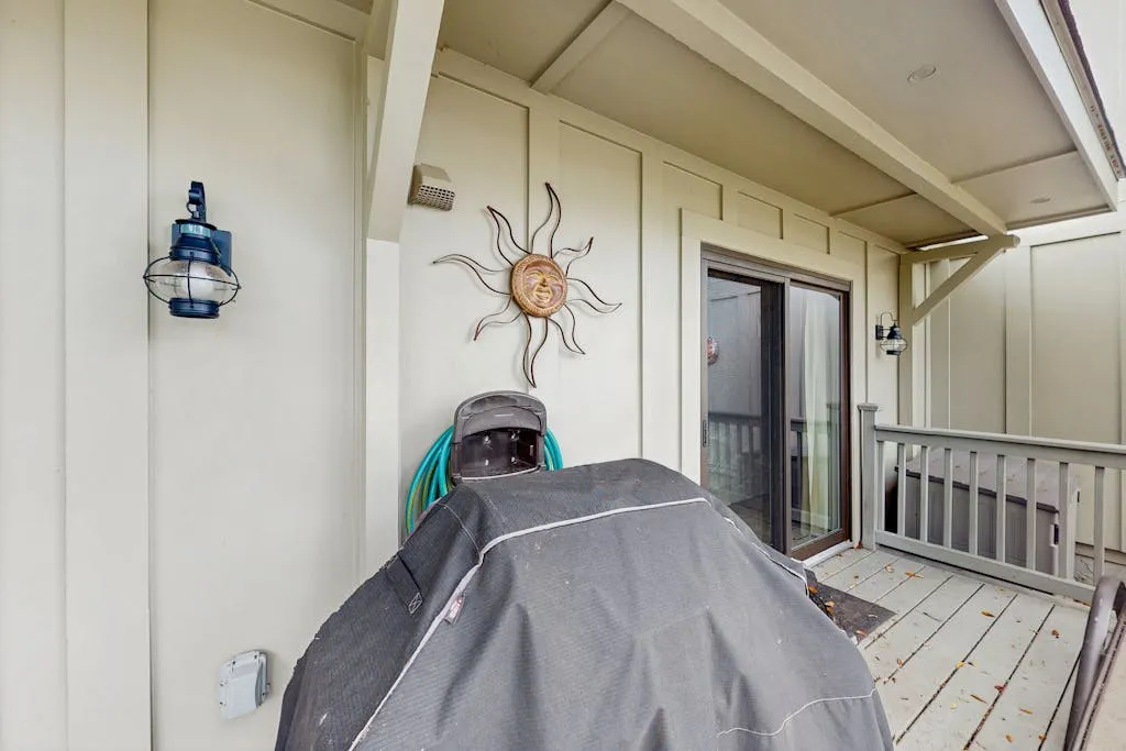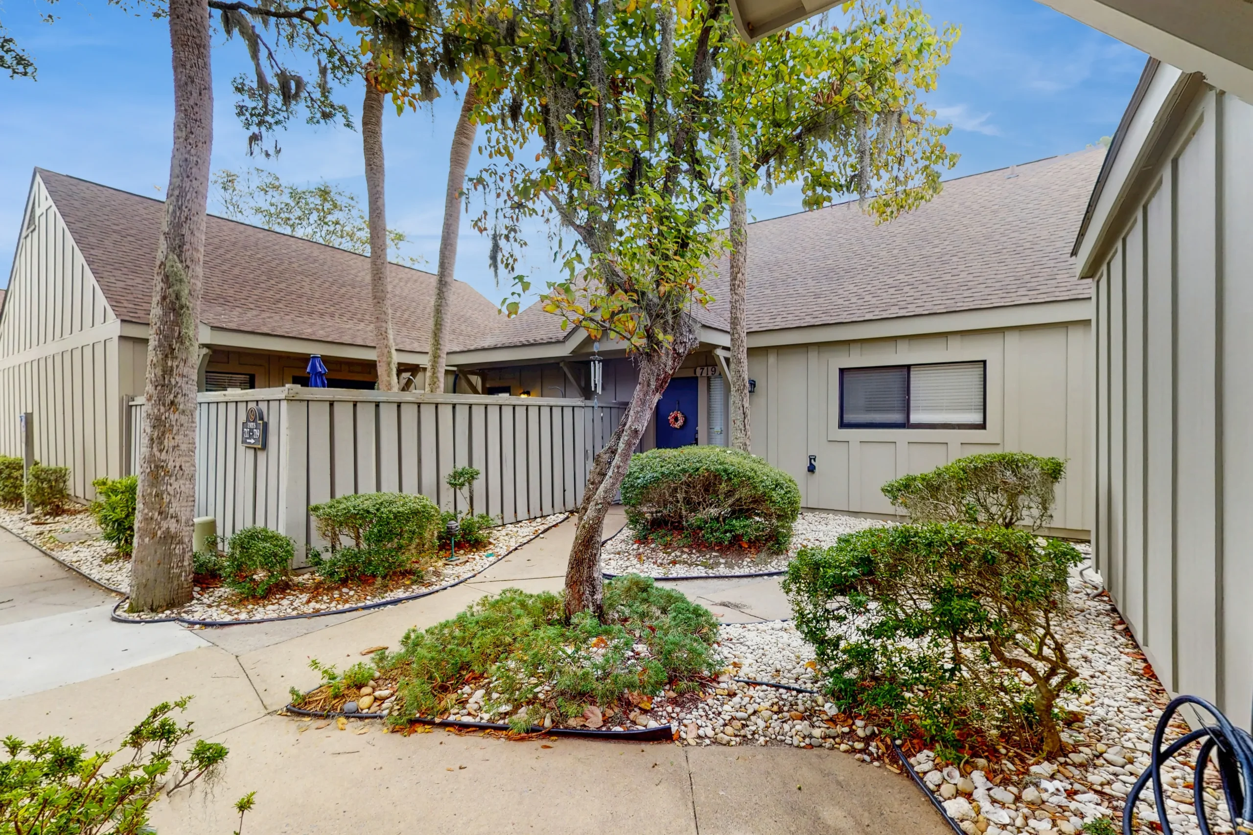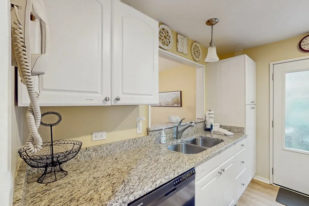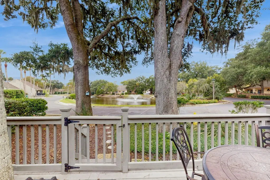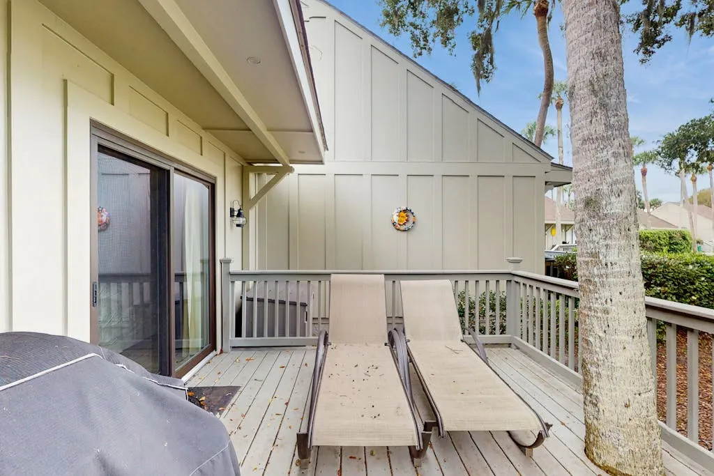 Ideal for a small family getaway or romantic escape for two, Queens Grant 717 is a charming home offering an open layout, a comfortable living and dining area with vaulted ceilings, and a full, well-equipped kitchen. Just outside, accessible via a sliding glass door off the living room, there is a private, furnished patio with a gas grill that overlooks the nearby lagoon. Guests here will also have access to a total of five community