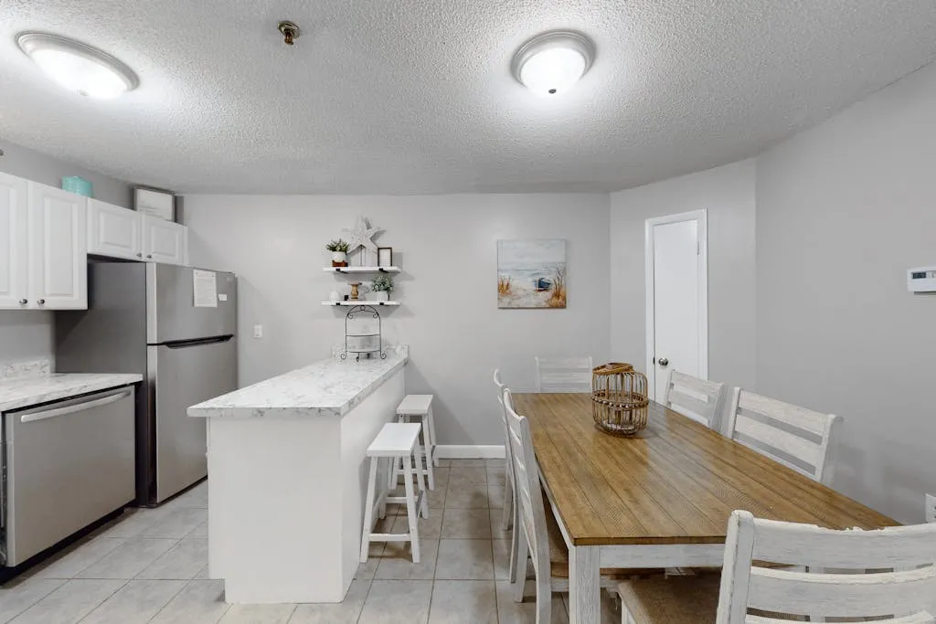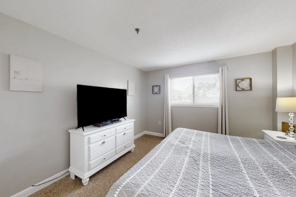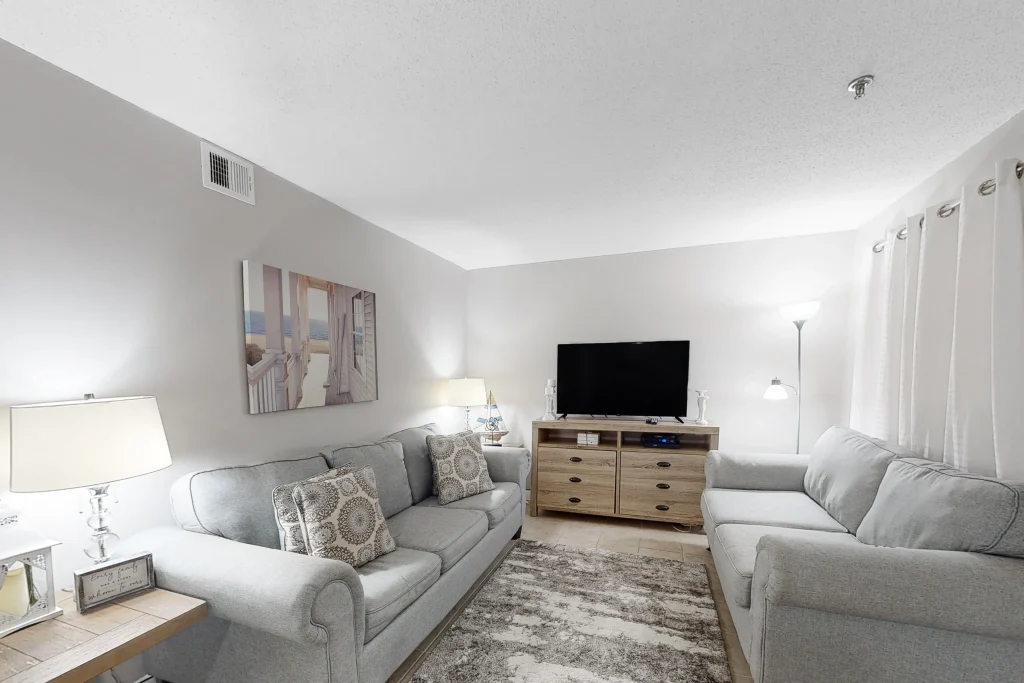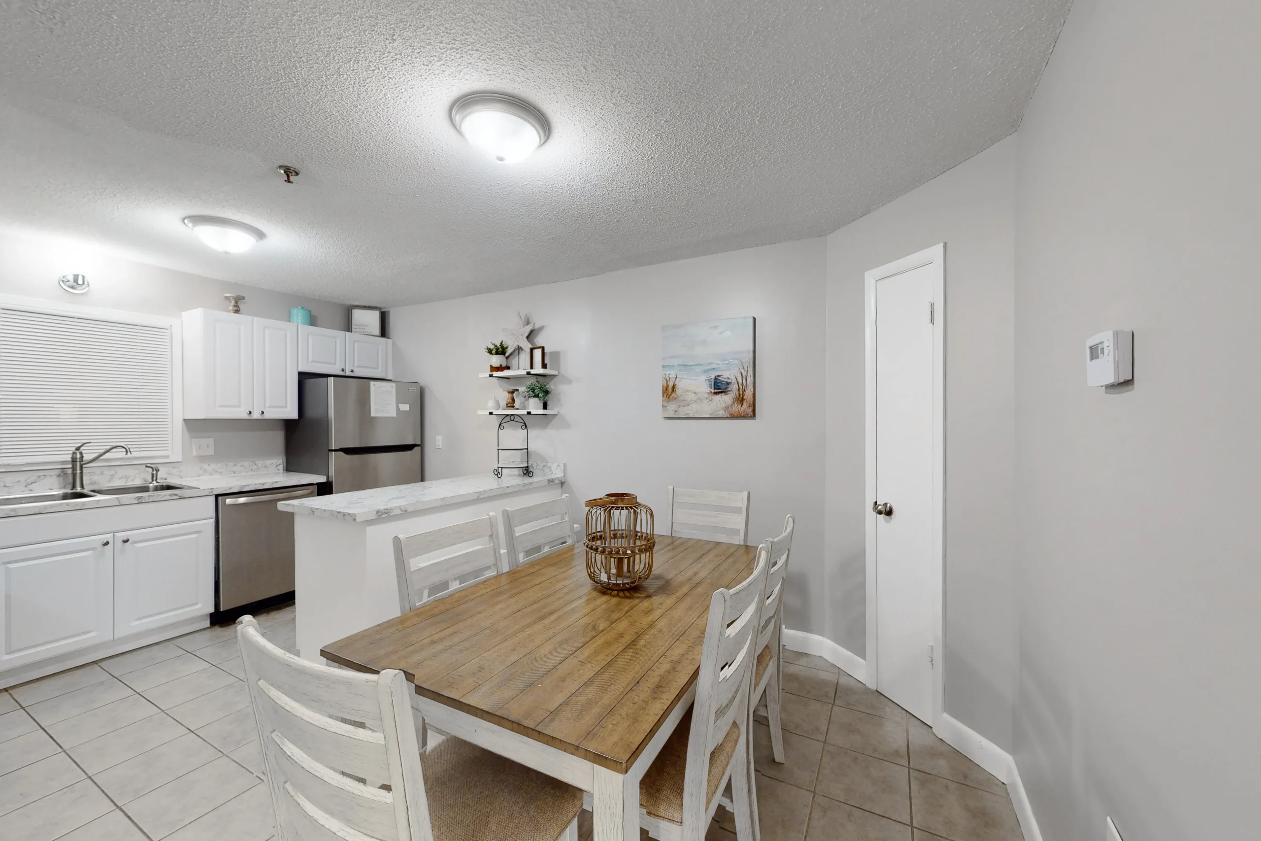 The condo is bright and inviting, with clean whites and understated coastal decor setting a relaxing mood for your stay. Sofas and a smart TV set the stage for casual downtime in the living area. A full suite of stainless steel kitchen appliances is equipped to easily handle home cooking. A Keurig single-serve and a traditional drip coffee pot offer your choice of convenient morning brew options. Home essentials include central air-conditioning and free WiFi. Shared laundry facilities are located on-site.