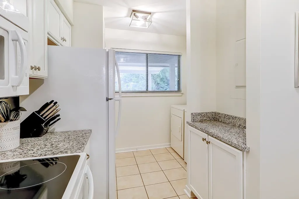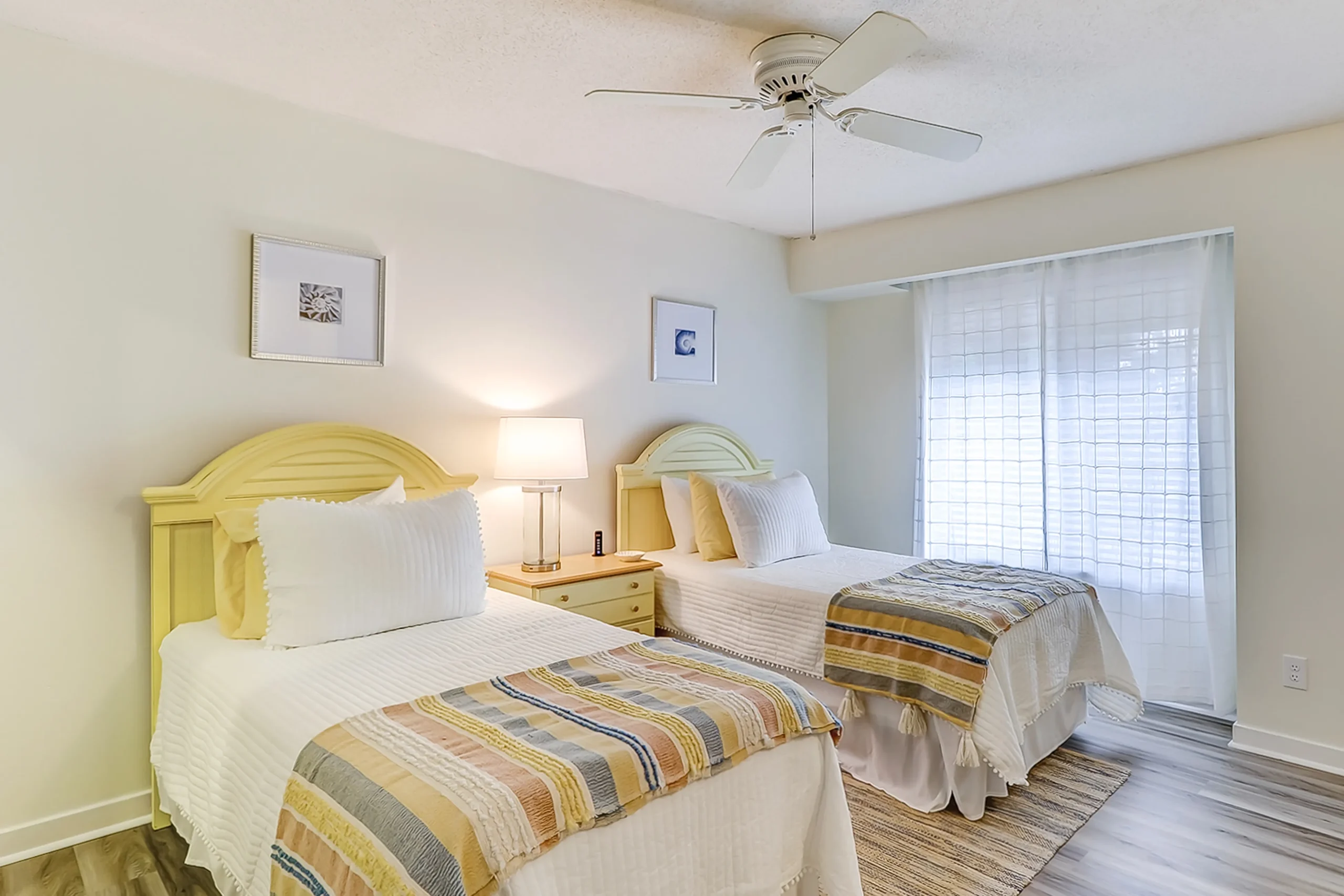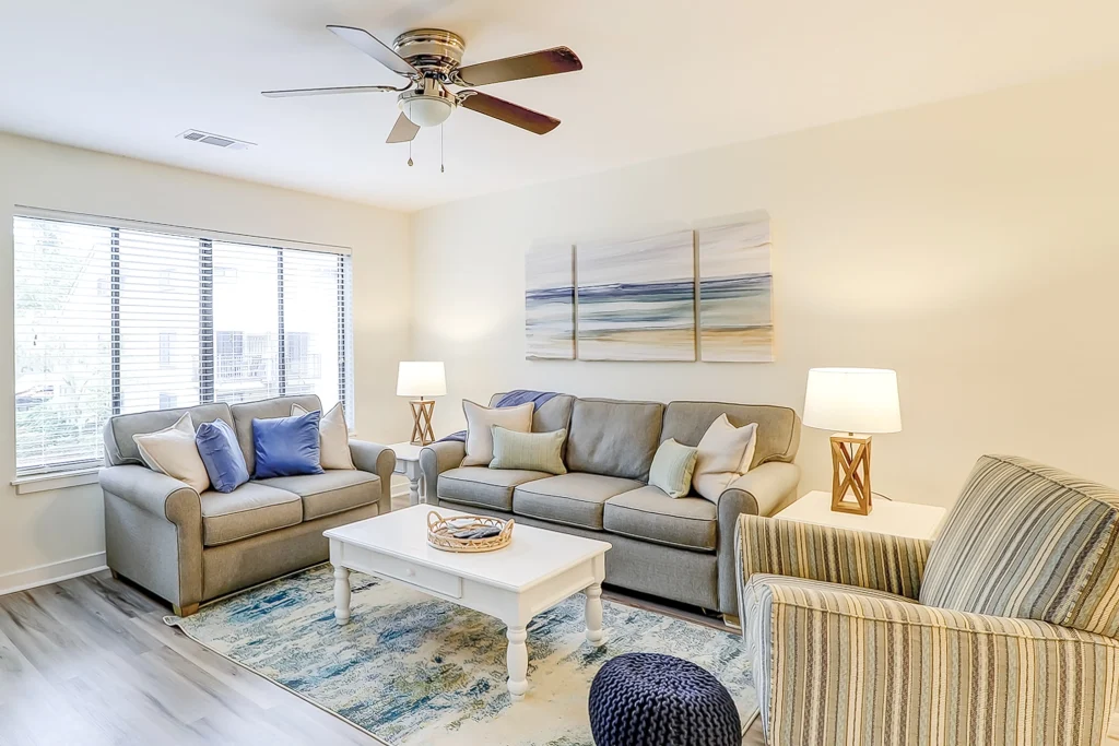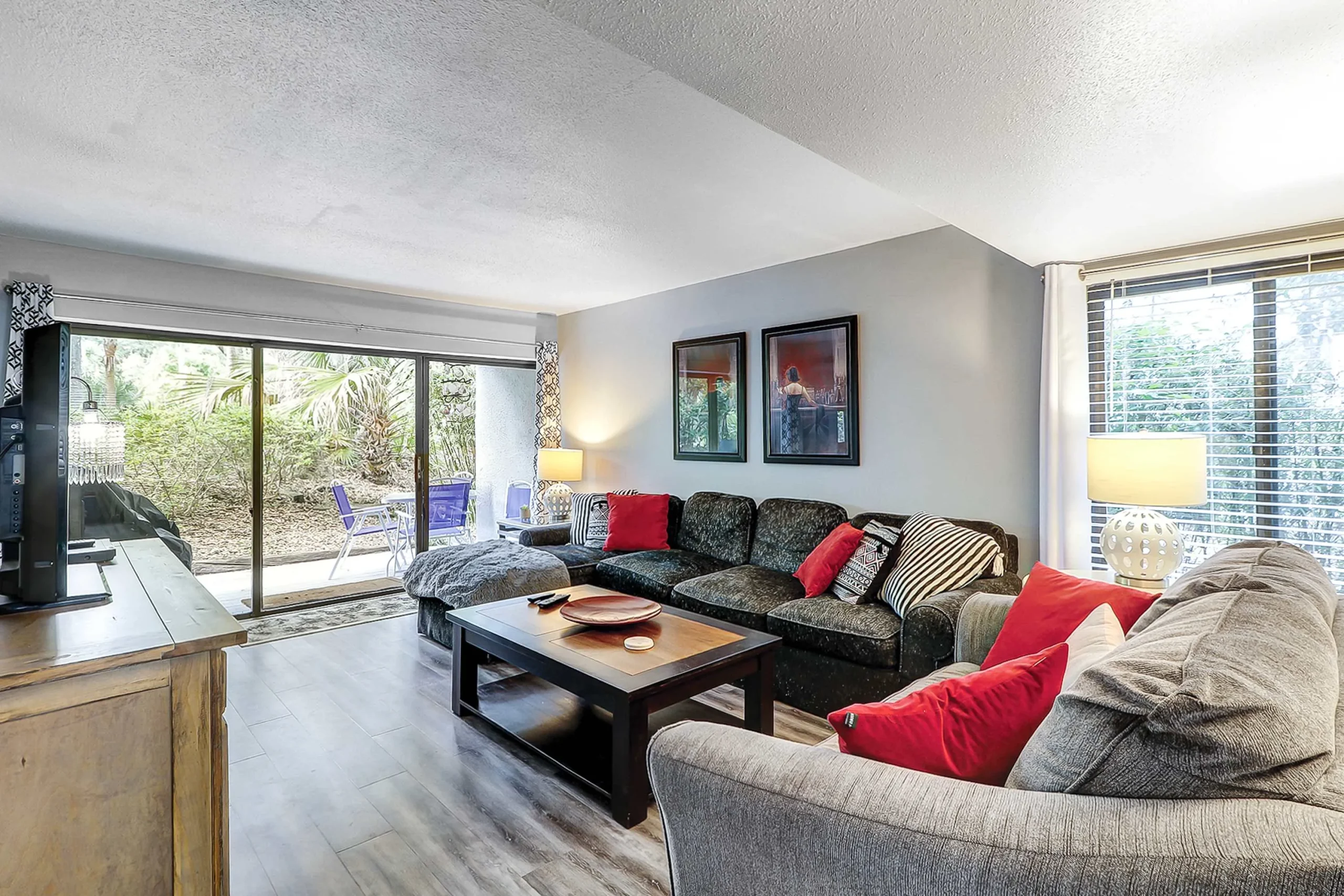 Perfect for a relaxing getaway to Hilton Head Island, this two-story condo has all of the comforts of home in a serene package that is sure to spoil you and your guests. The complex is within walking distance to the beach and many attractions, but is very quiet and relaxing so it’s great for families. From the well-equipped, full kitchen to the spacious dining area and the inviting, beach-themed living area with matching so