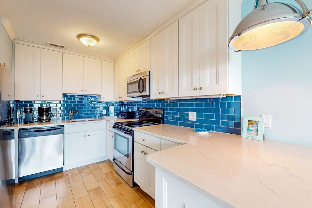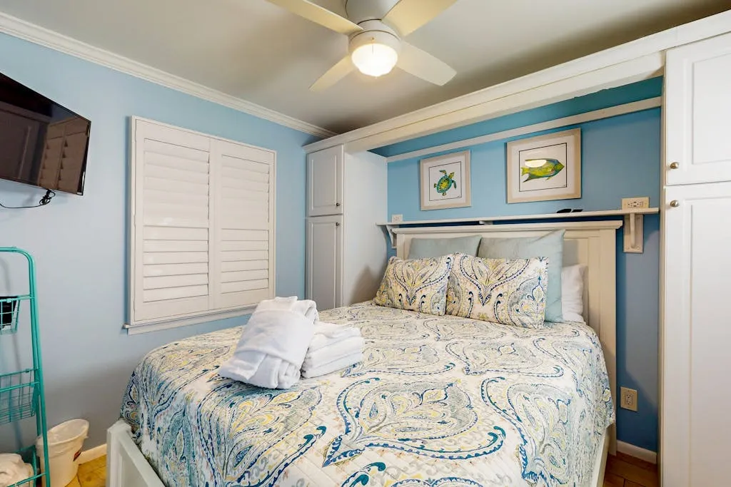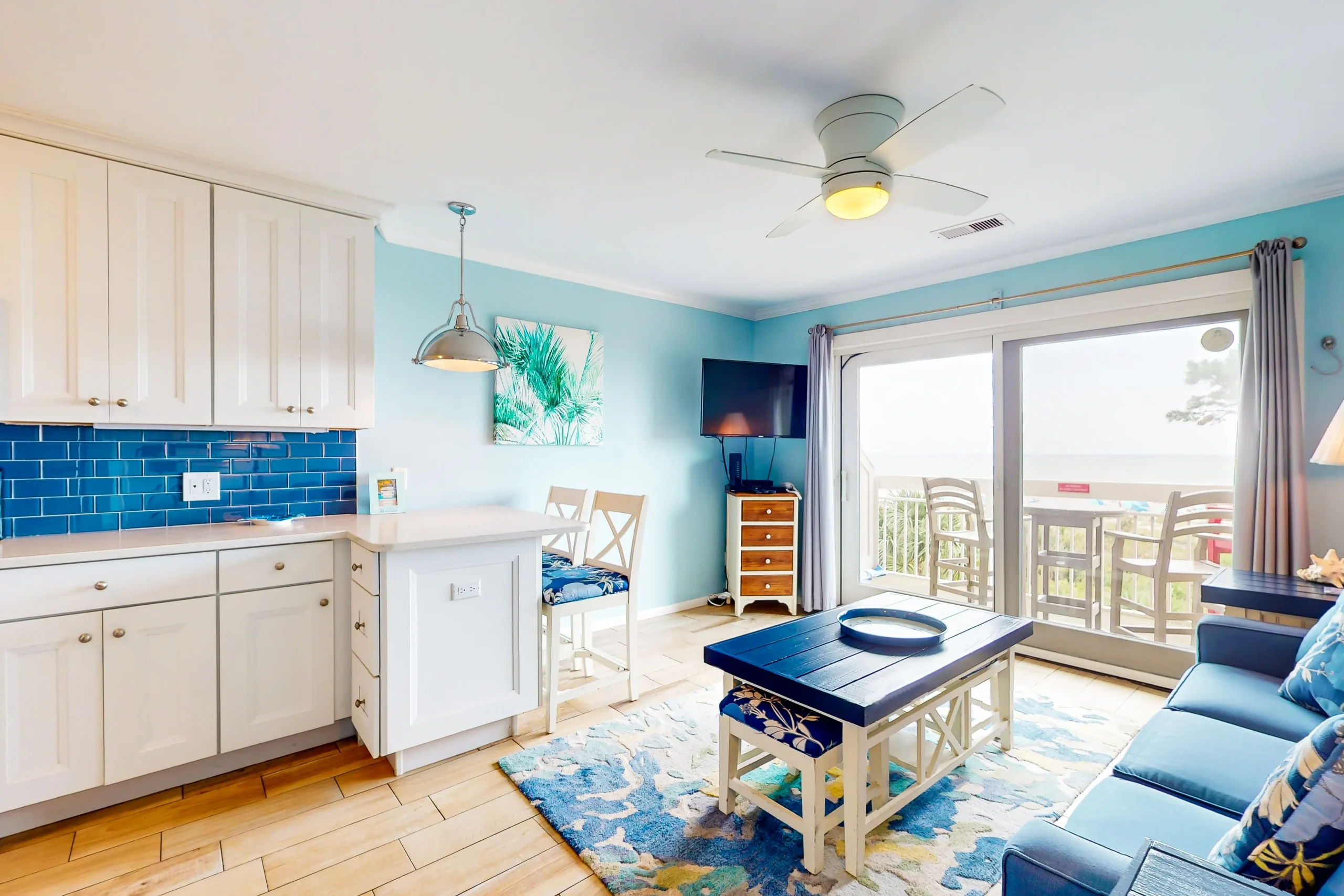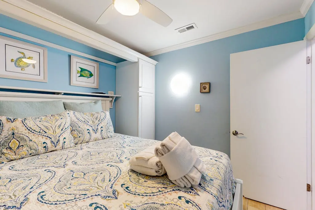 This direct oceanfront condo offers the absolute best views on the Island! This home features a bright and inviting living area with a large, flat screen TV, a full, well-equipped kitchen with stainless steel appliances, granite countertops, and a cozy breakfast bar, plus a furnished top floor balcony from where you can enjoy spectacular sunrises over the ocean. Guests will also enjoy access to the shared pool and a children’s pool if the kids are joining you.