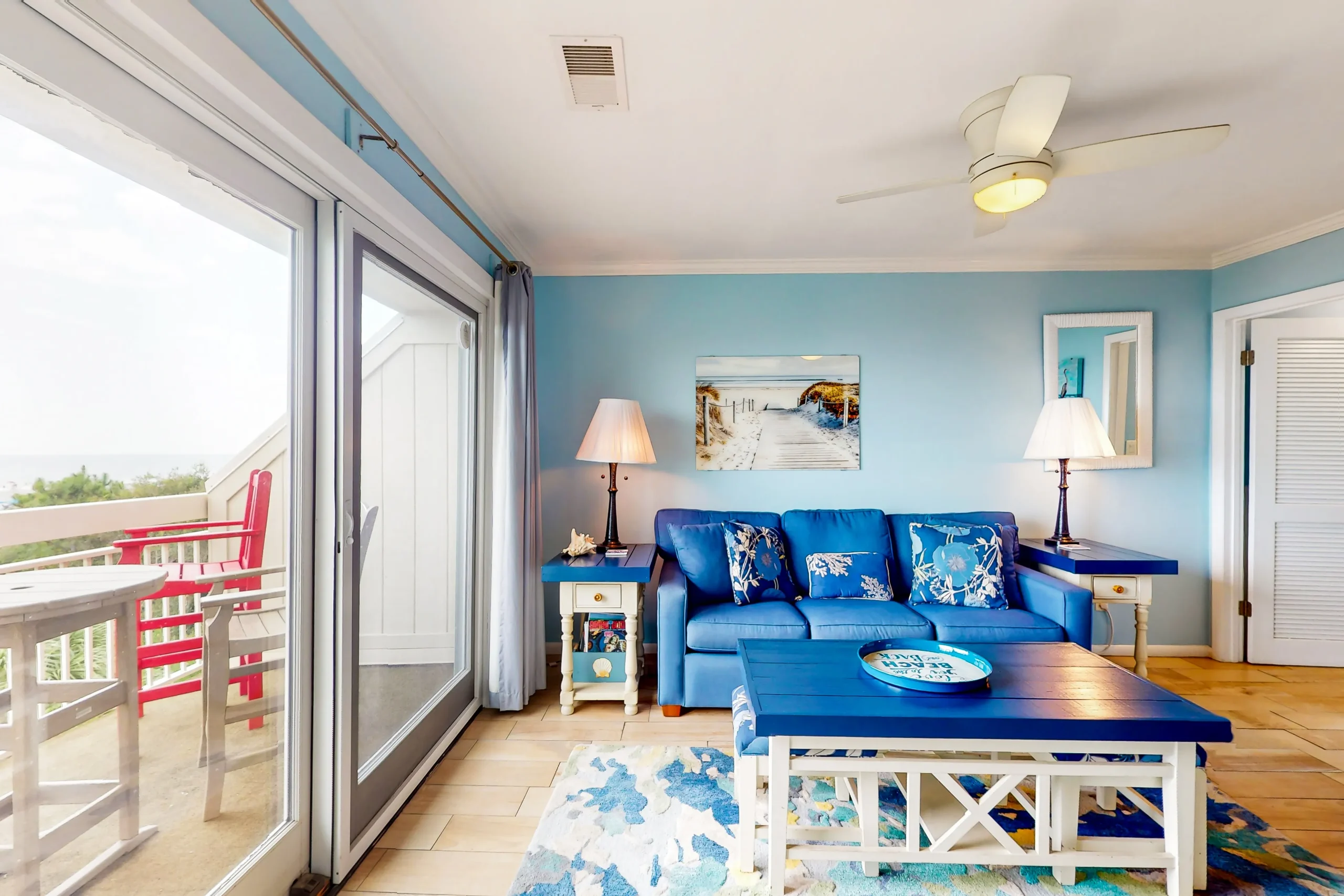 This direct oceanfront condo offers the absolute best views on the Island! This home features a bright and inviting living area with a large, flat screen TV, a full, well-equipped kitchen with stainless steel appliances, granite countertops, and a cozy breakfast bar, plus a furnished top floor balcony from where you can enjoy spectacular sunrises over the ocean. Guests will also enjoy access to the shared pool and a children’s pool