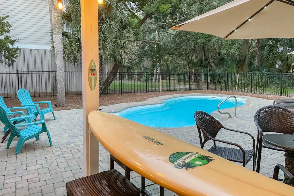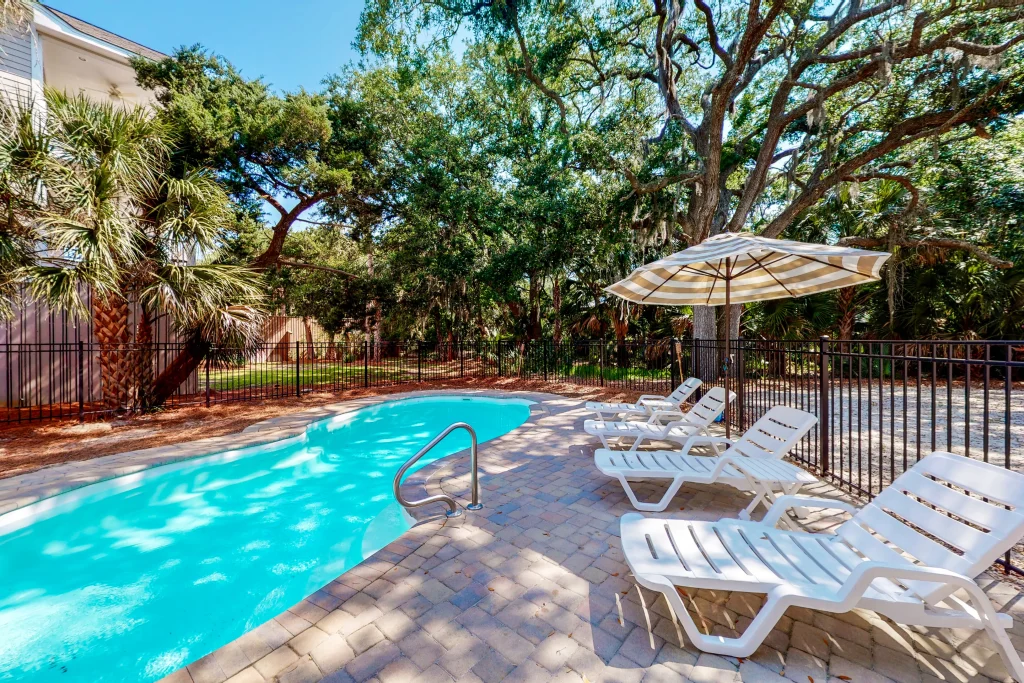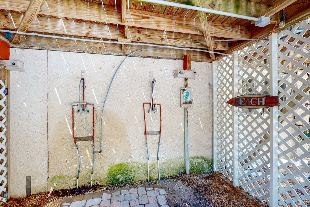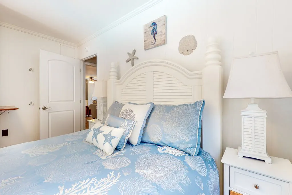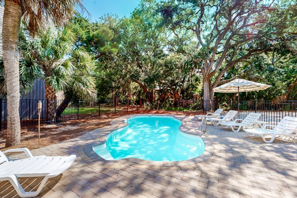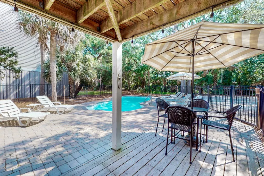 Did we mention that the beach is right across the street? Relax to views of the ocean from the sun deck and glass porch. The private pool is the centerpiece for lounging and playing and will have you enjoying your time outside as much as your relaxation inside. The ground-level patio and pool area are equipped with comfortable seating and a grill for the family chef. Any worries will drift away with the sweet ocean breeze as you embrace island time.