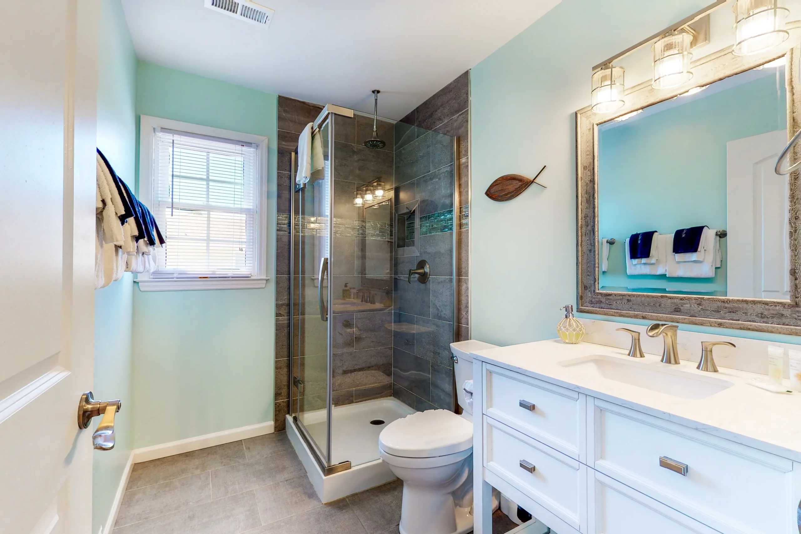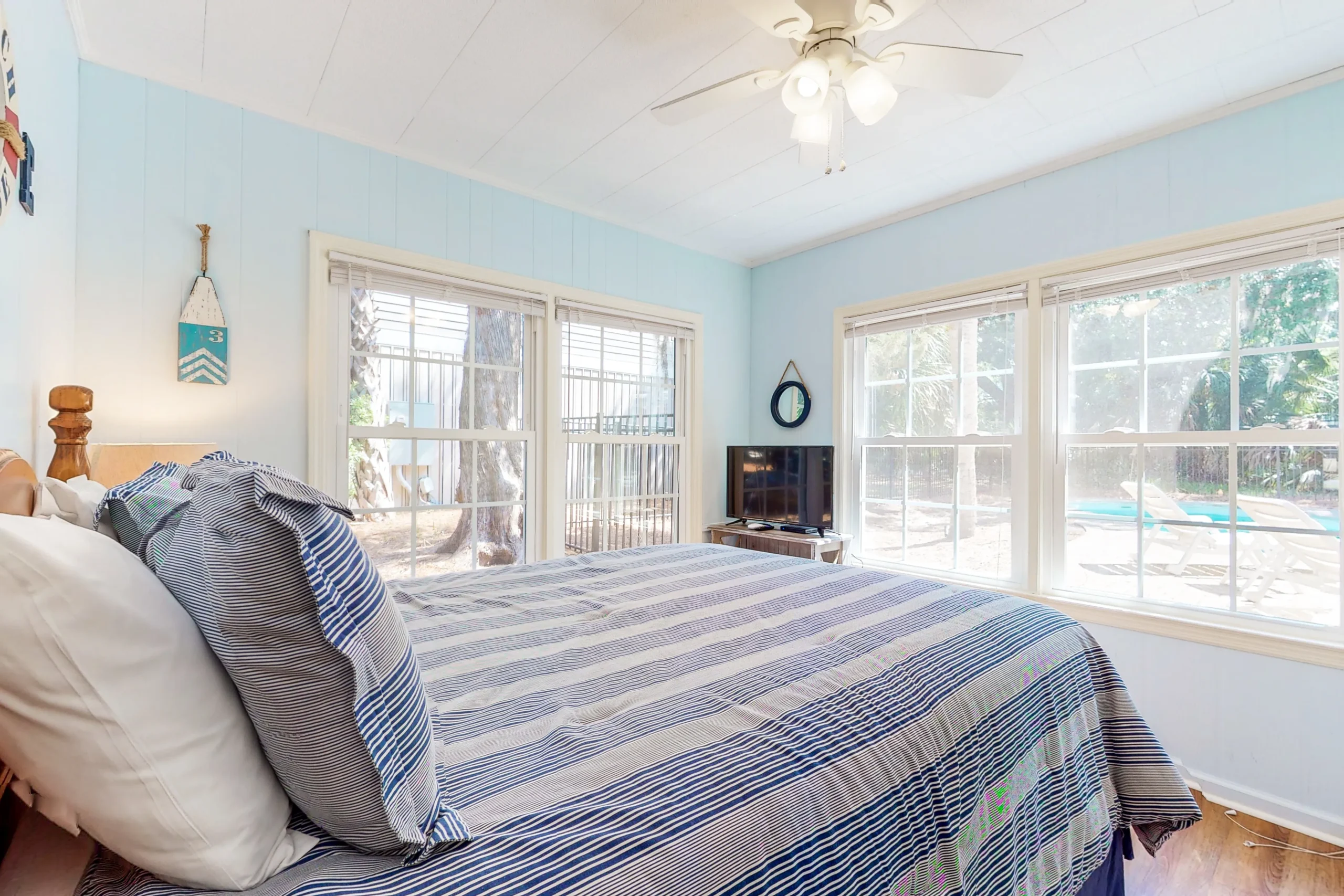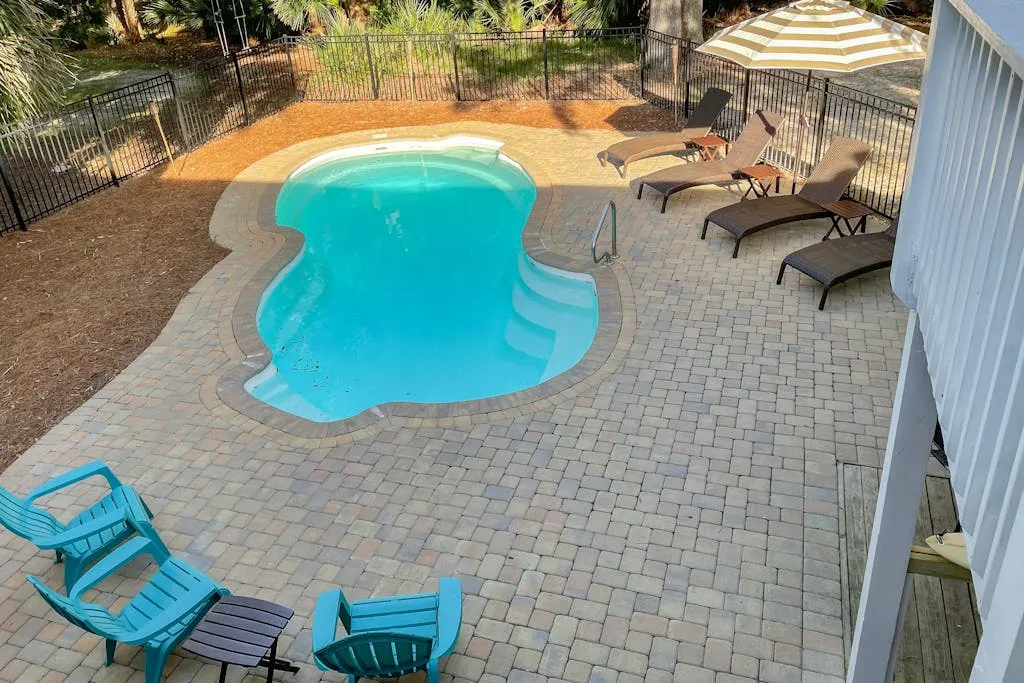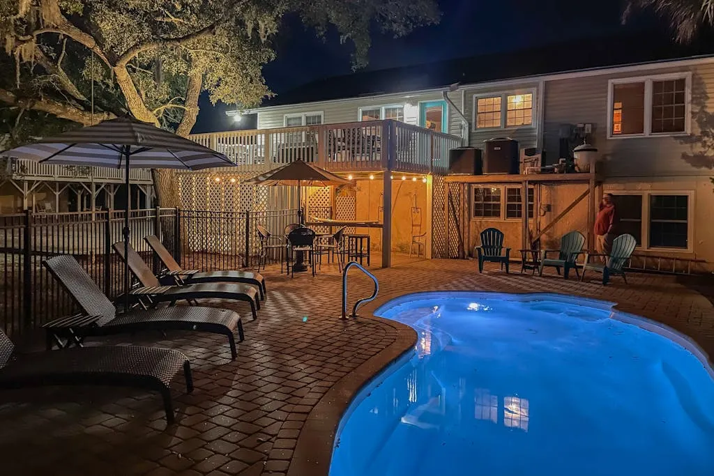 Did we mention that the beach is right across the street? Relax to views of the ocean from the sun deck and glass porch. The private pool is the centerpiece for lounging and playing and will have you enjoying your time outside as much as your relaxation inside. The ground-level patio and pool area are equipped with comfortable seating and a grill for the family chef. Any worries will drift away with the sweet ocean breeze as you embrace island time.