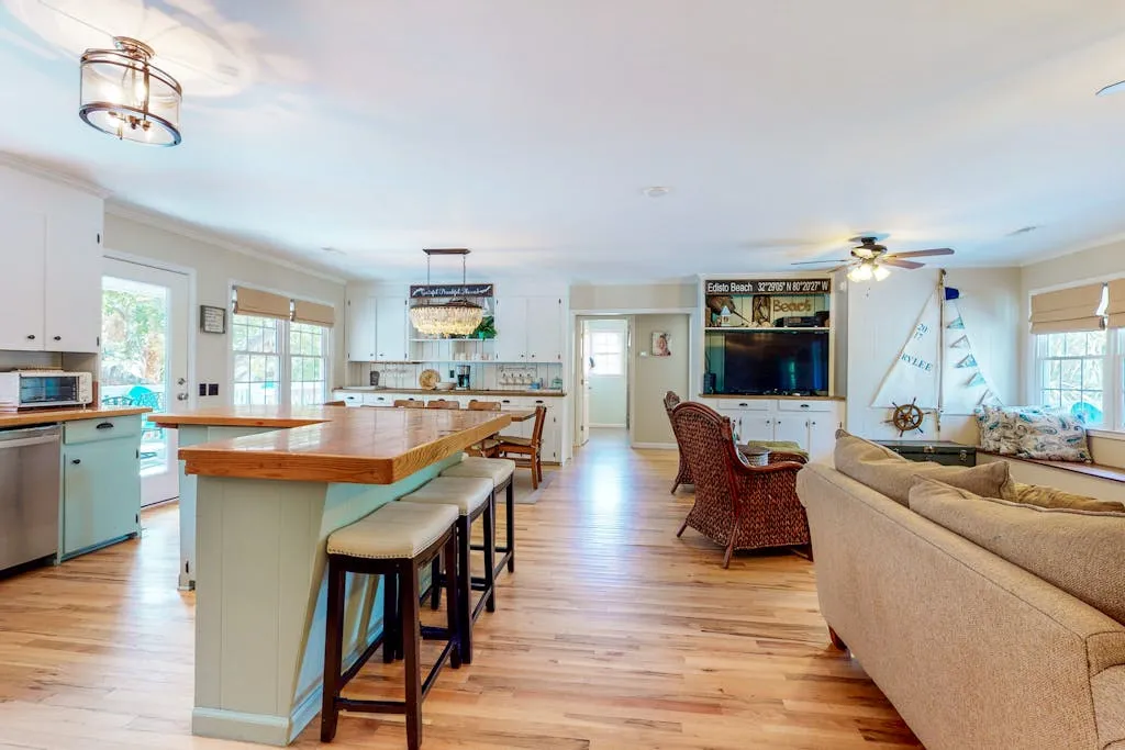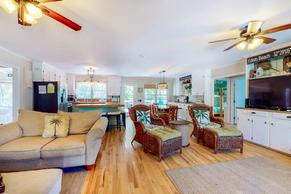 Are you looking for the perfect vacation home for you and your family? Life of Rylee has all you need and more for a memorable and wonderful Edisto Beach vacation. This home is not only spacious, but it is also well equipped with all the comforts of home. The well-equipped kitchen has plenty of space for the chef in your group to cook up a feast. Free WiFi and cable TVs in every room will keep everyone entertained in case a brief aftern