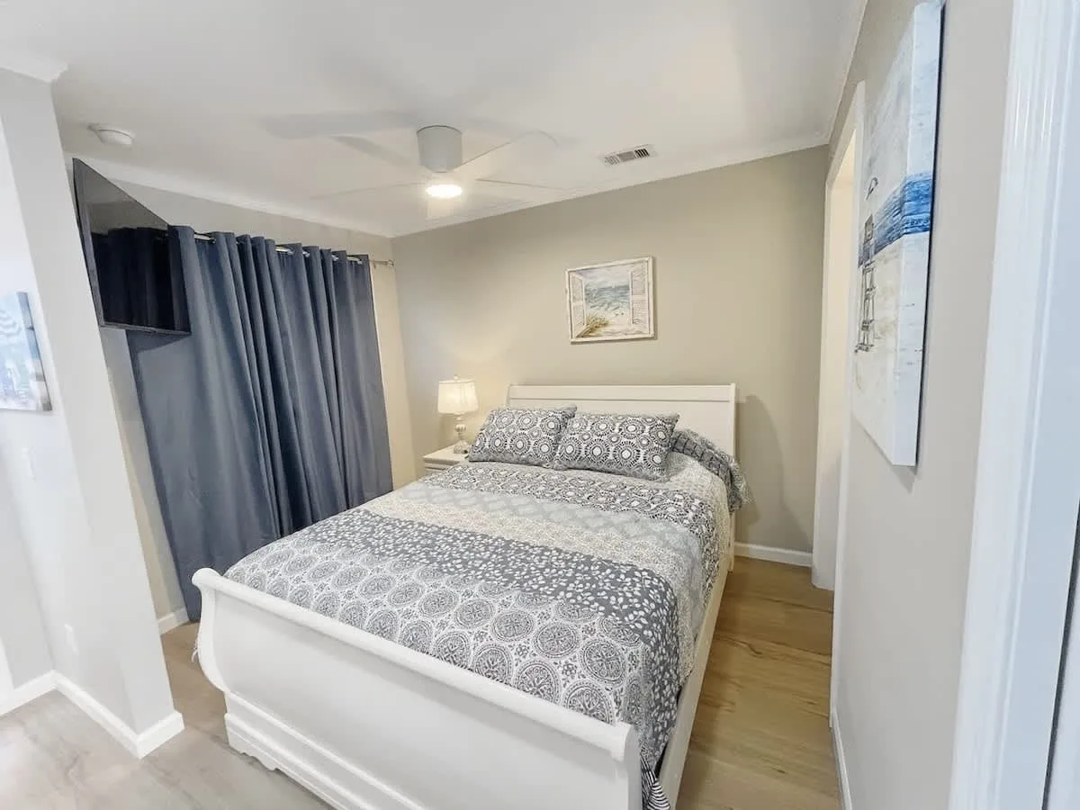 * PRIVATE BEDROOM with comfortable sleeping and coastal décor