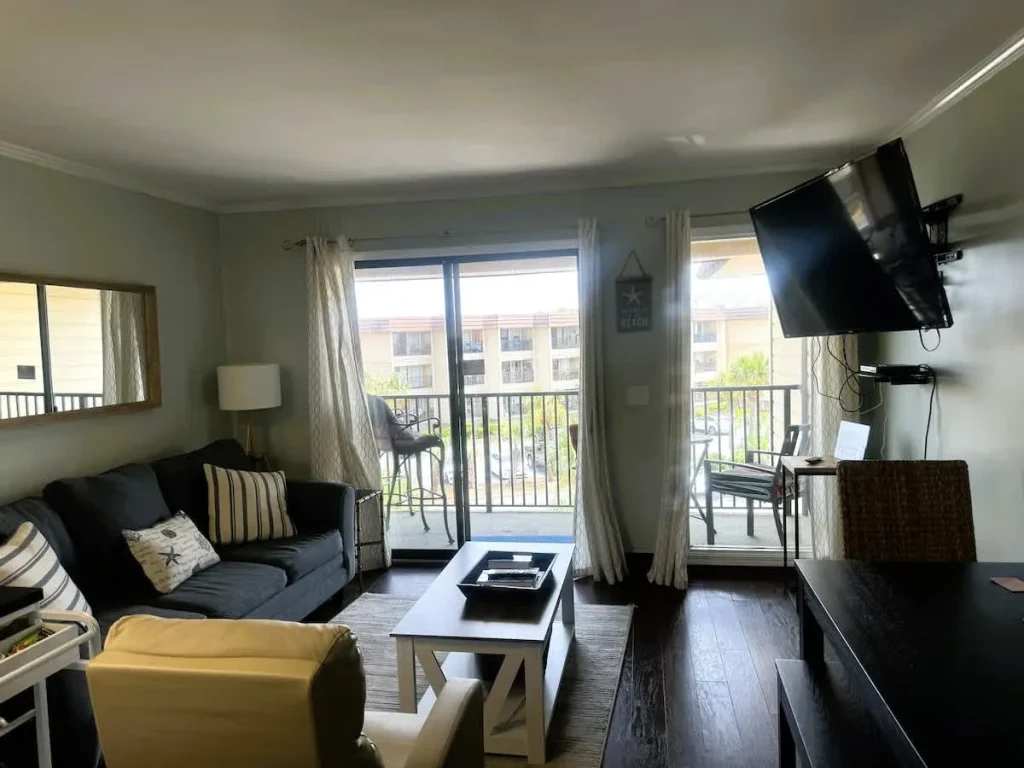 Updated Villa with a Queen bed, Sofa sleeper in living room and a set of bunks in open area of bedroom which is perfect for children. Quick 1 minute walk to beach and largest beach pool on Hilton Head. The elevator is close by for easy access. The villa has rustic beach LVP hardwoods and tiled floor in the bathroom. Updated kitchen with granite countertop, stove, microwave, full size refrigerator and dishwasher, This vacation villa has everything you would expect to get in a vacation rental with a fully stocked kitchen and bed & bath linens included. Ride bikes on the beach or the miles of bike trails around Hilton Head Island.