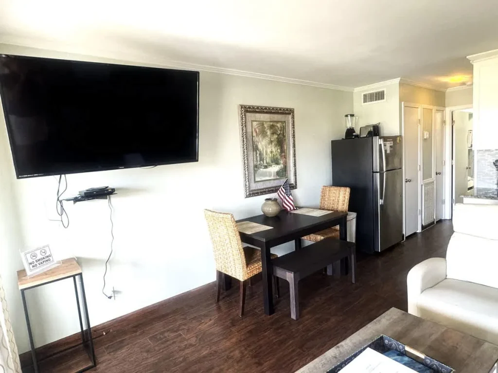 •Cable flat screen TVs in living room and bedroom