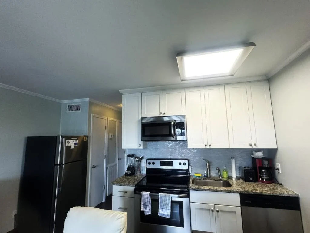 •Fully equipped kitchen, full size stove refrigerator dishwasher, and microwave