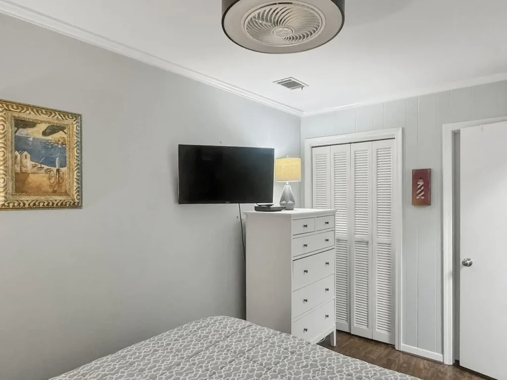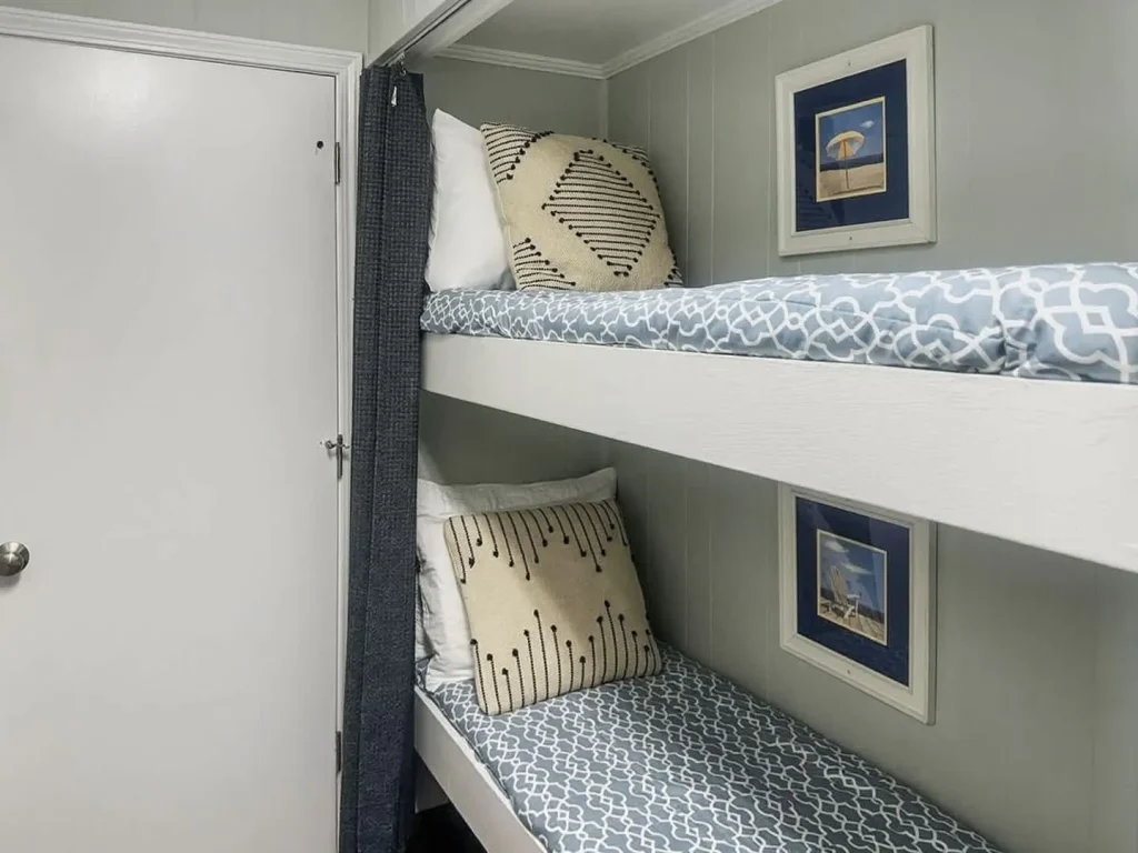 Sleeping Quarters: The master bedroom offers a plush Queen bed and a private TV. In the hallway, we’ve cleverly integrated child-sized bunk beds, making this a favorite for families traveling with little ones.