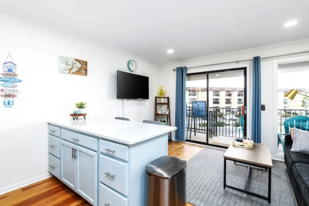 Enjoy modern resort living with a view. This fully renovated villa features a primary bedroom with a stylish barn door, integrated bunk beds for the kids, and a bright, open kitchen. The private balcony overlooks the grounds with clear sights of the Atlantic. Guest favorites include the proximity to the Beach Cafe and the easy 2-minute stroll to the sand. With all-new furniture and high-standard finishes, B205 is the premier choice for your next Hilton Head getaway.