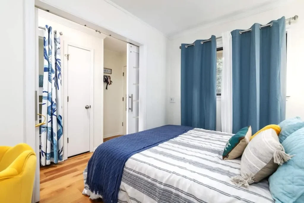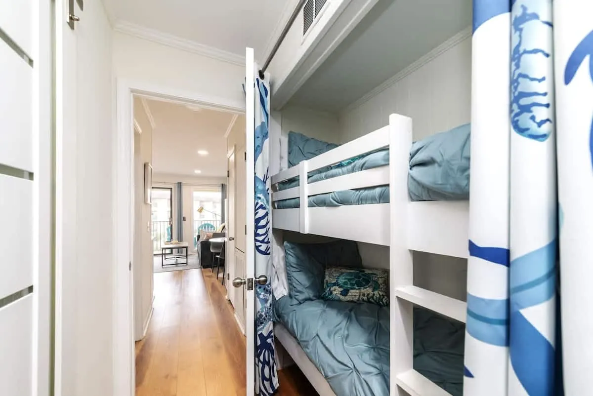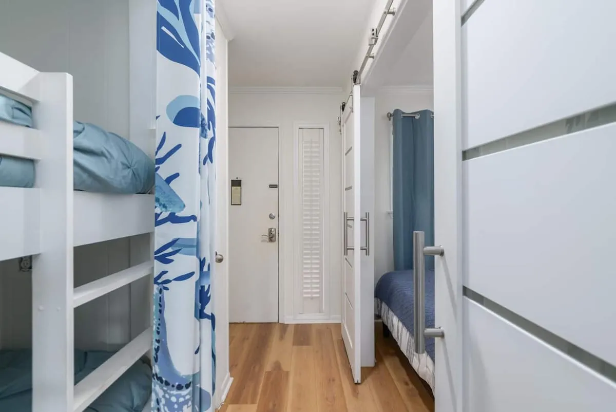 Sleeping Quarters: The primary bedroom offers a serene retreat behind a stylish privacy barn door. For families, two integrated bunk beds provide a cozy and efficient sleeping nook for children.
