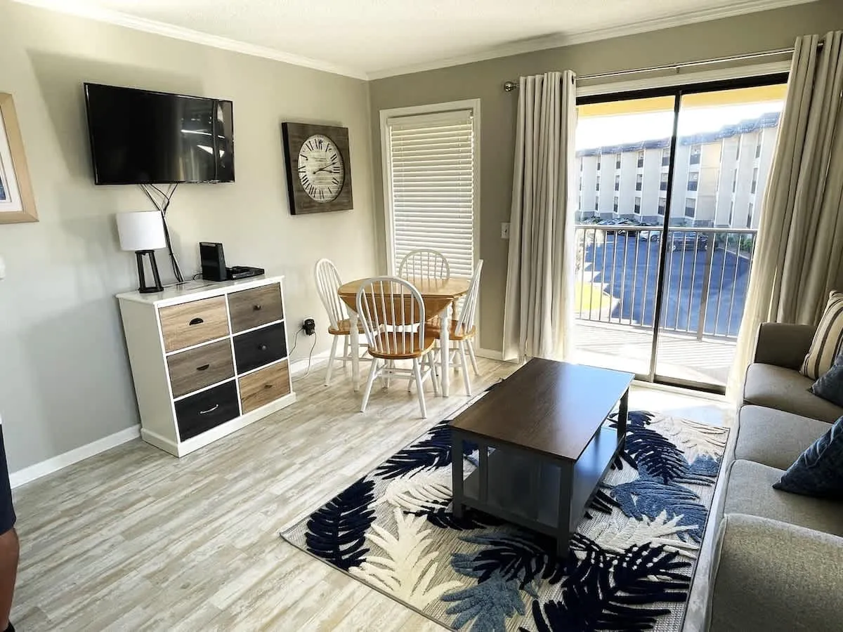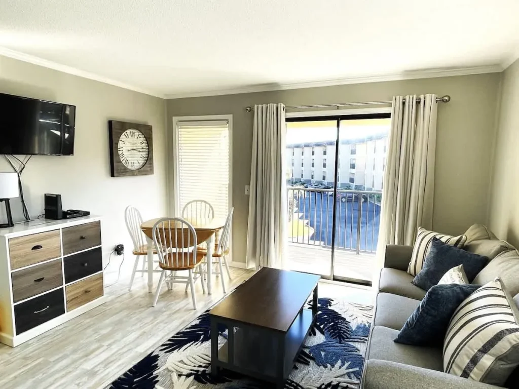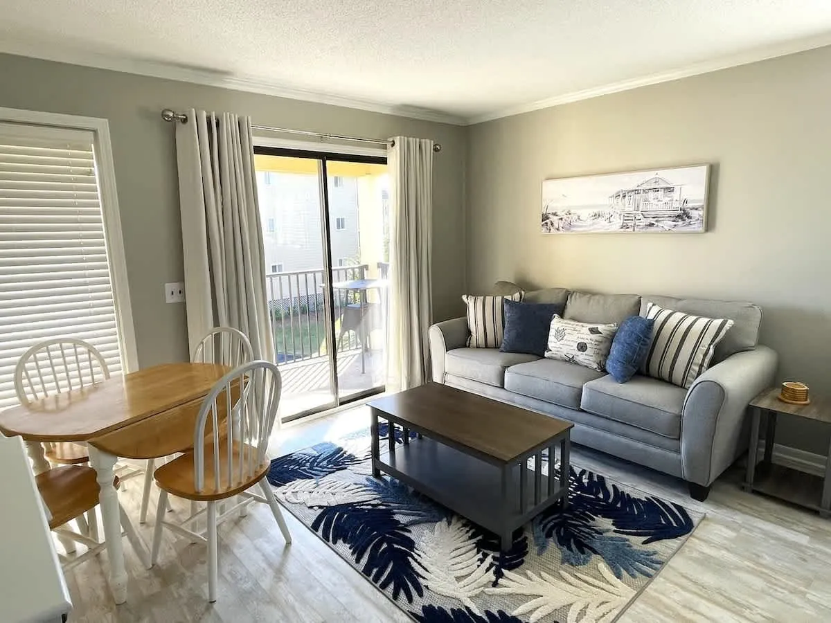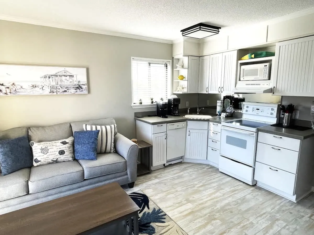 Updated open 1 bedroom floor plan with a Queen Bed in Bedroom and sofa sleeper and bunk beds. Perfect for couples or small family. Quick walk to beach. Largest pool on Hilton Head. Elevator close by for easy access. Nice ocean views from balcony.