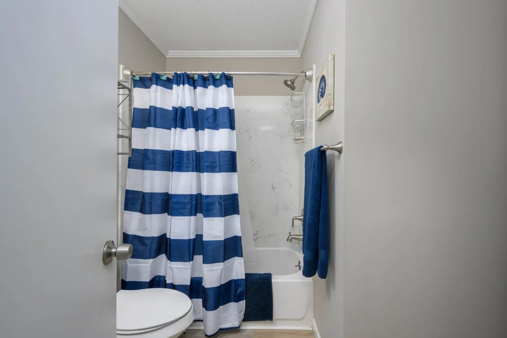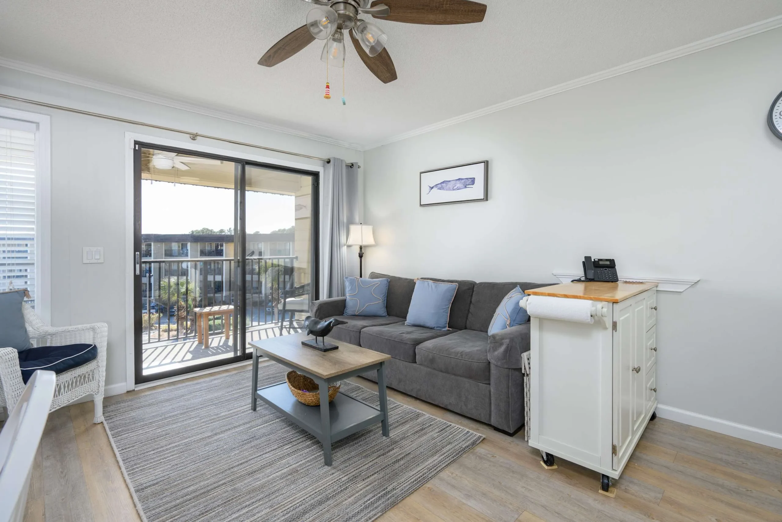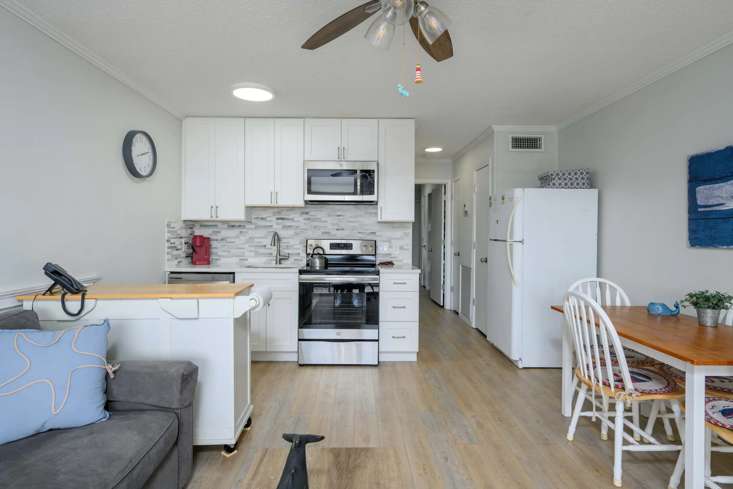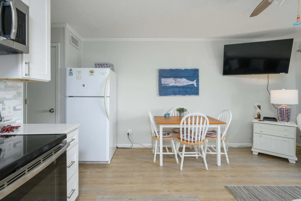 Natural light and coastal touches create a calm, vacation-ready atmosphere throughout the home.