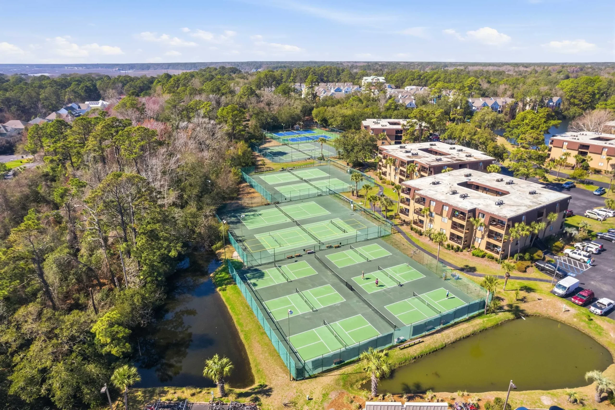 12 Professional Courts: 8 lit tennis courts and 4 pickleball courts (with an on-site pro).