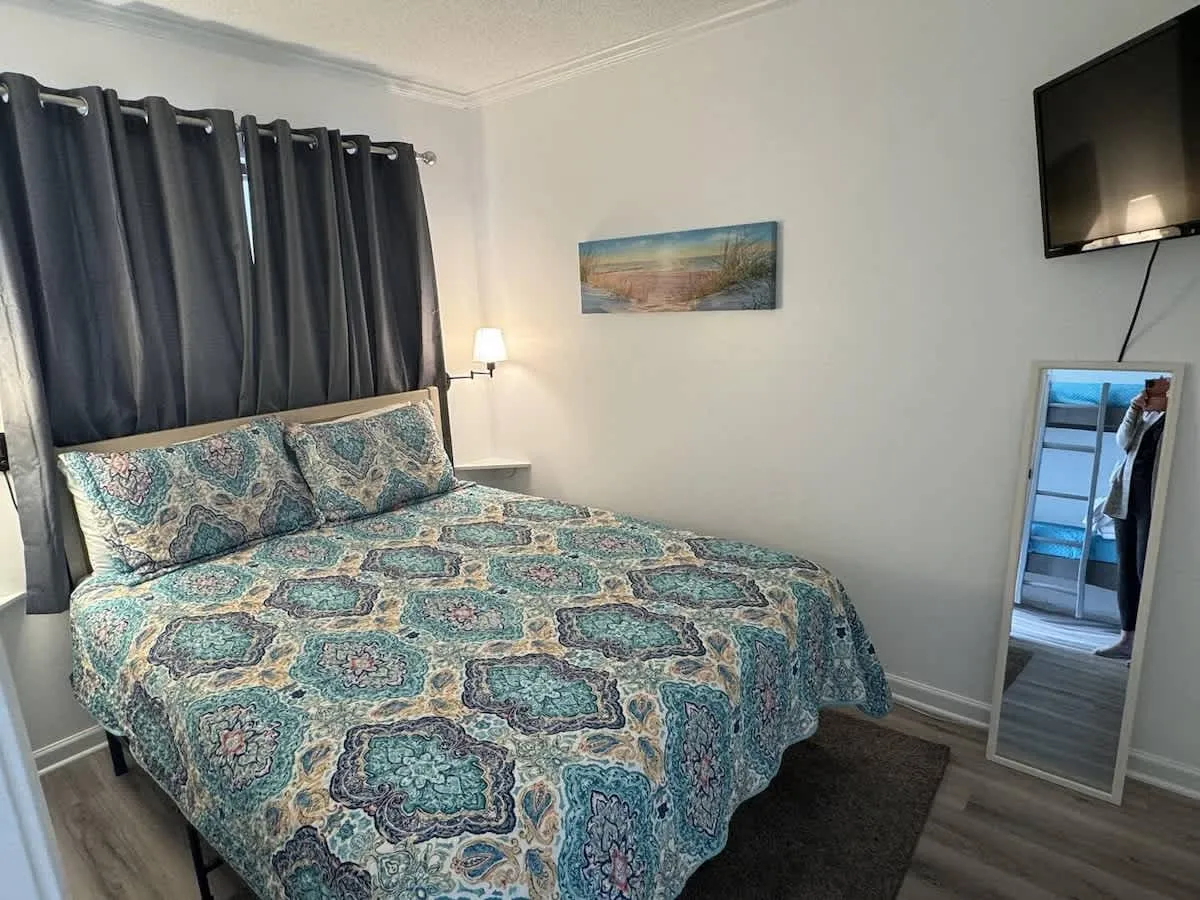 Cozy 1 bedroom with a set of bunks and pullout sofa. This villa has been updated with new coastal grey wood lam
