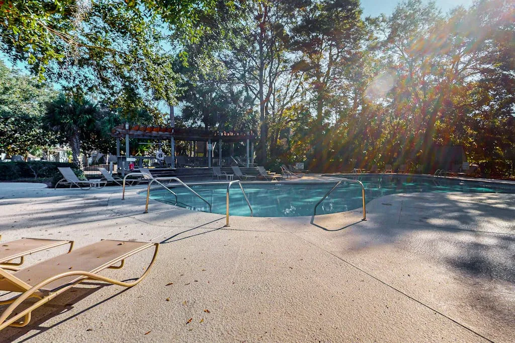 Step outside and take a refreshing dip in the community pool, just steps away from your unit, open seasonally from April to September. Rent bikes and explore the lush trails surrounding the area, or head to the nearby beach at Palmetto Dunes, either by biking a mile or catching a ride on the complimentary resort shuttle to The Dunes House for oceanfront dining.