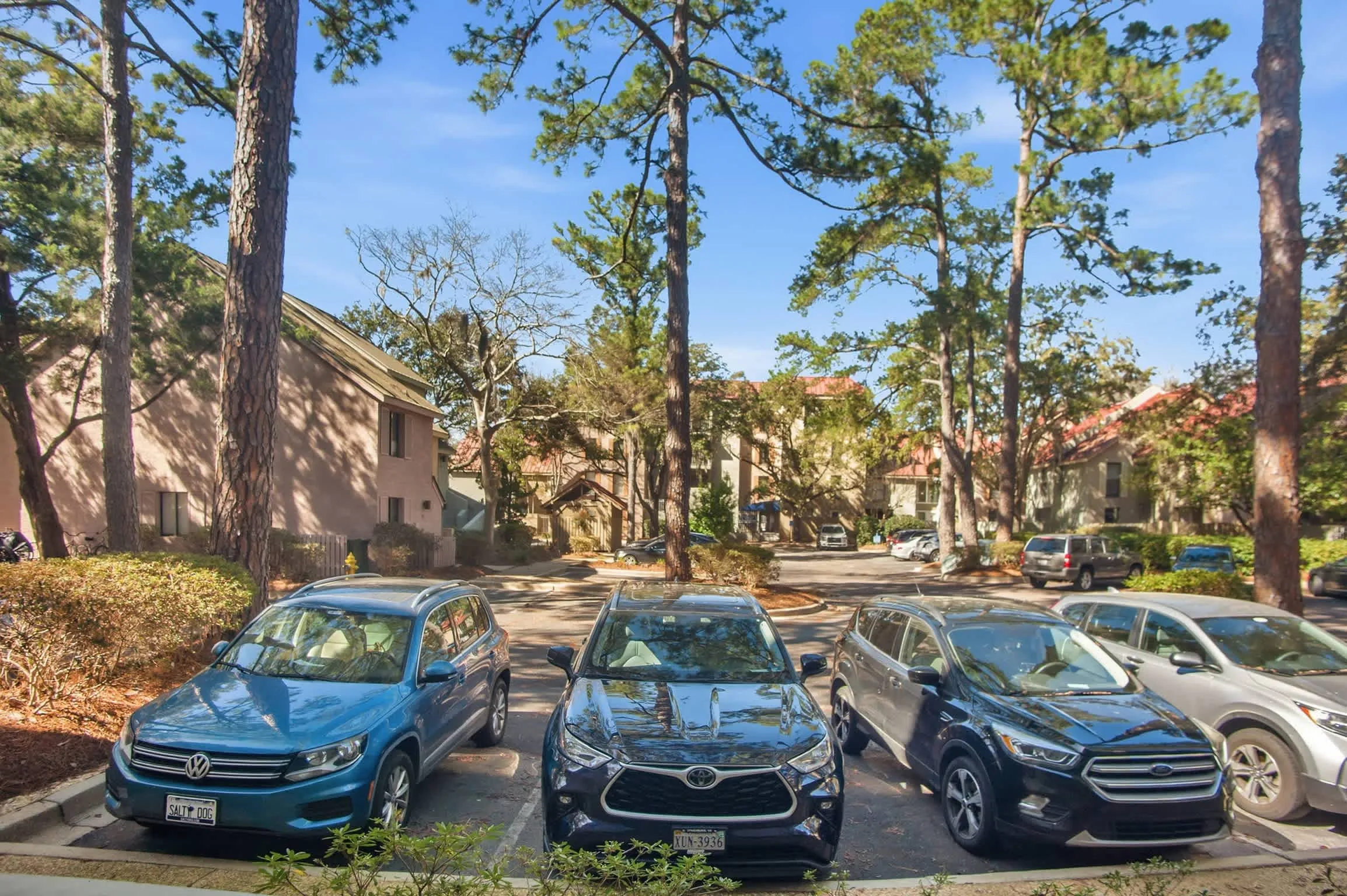 Guests have full access to the entire condo, including bedroom, bathroom, kitchen, living area, balcony, and in-unit washer and dryer. Free on-site parking is included. One pool pass is provided for the Sea Pines Resort pool across the street.