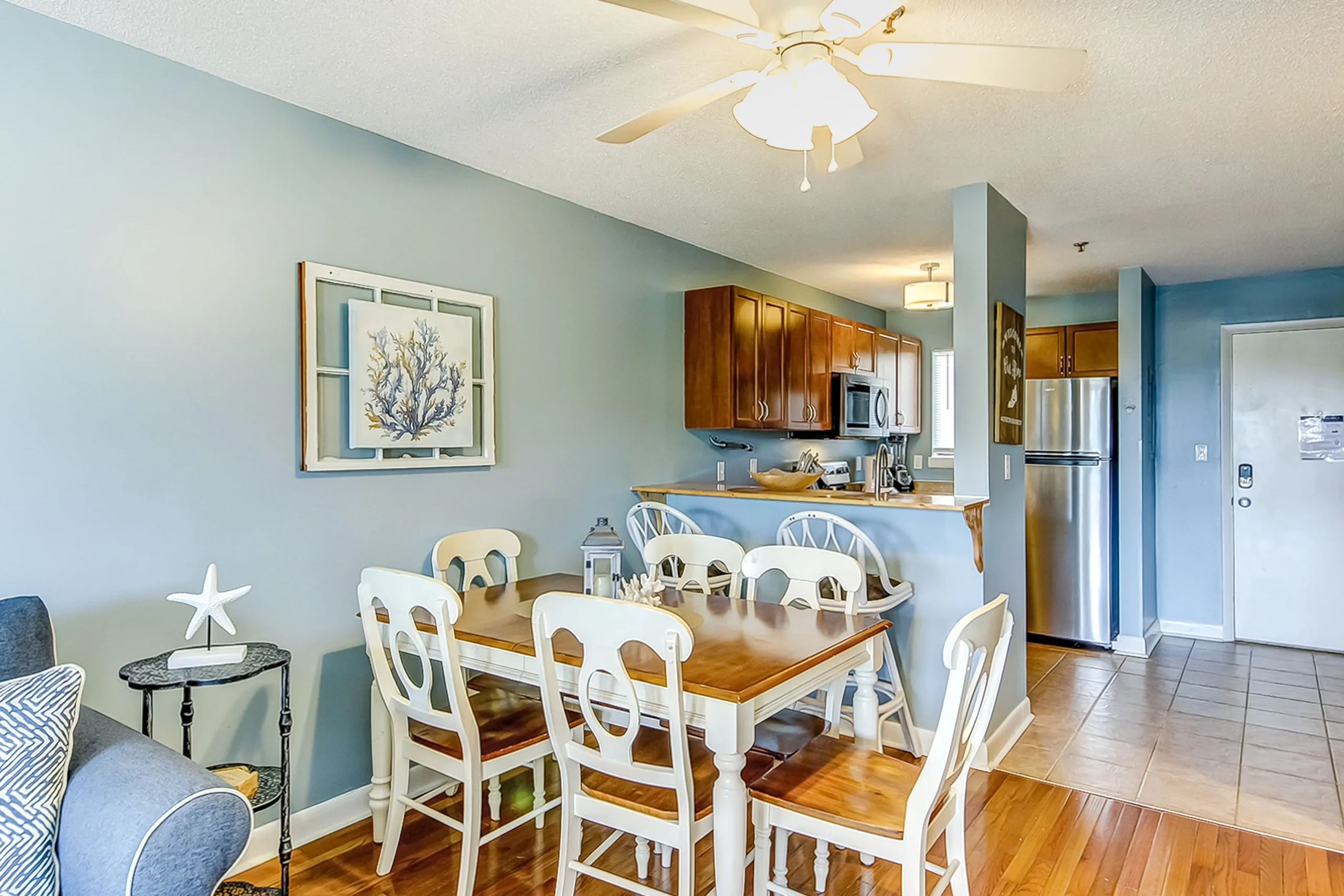 NEW stainless steel appliances and NEW king bed as of March 2022! Located just a block from the beach, this updated, fourth-floor condo is guaranteed to make you feel right at home on Hilton Head Island. Adorned with ocean hues and nautical decor, this single-level condo features a well-equipped, full kitchen with a breakfast bar for two, while more elaborate meals can be enjoyed at the nearby table for six (where you can also