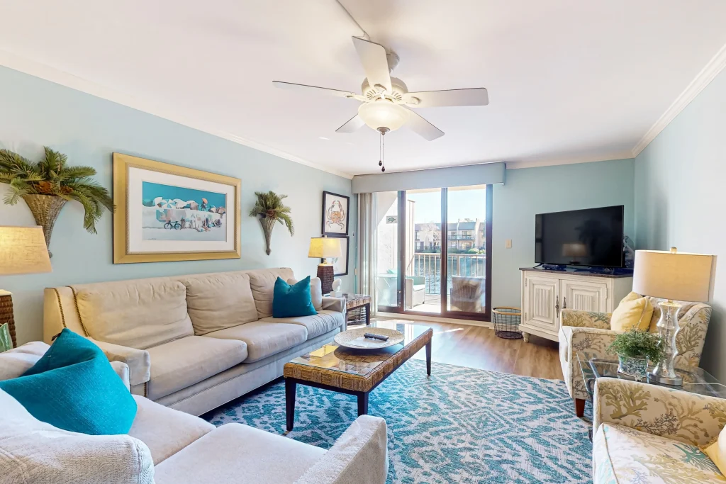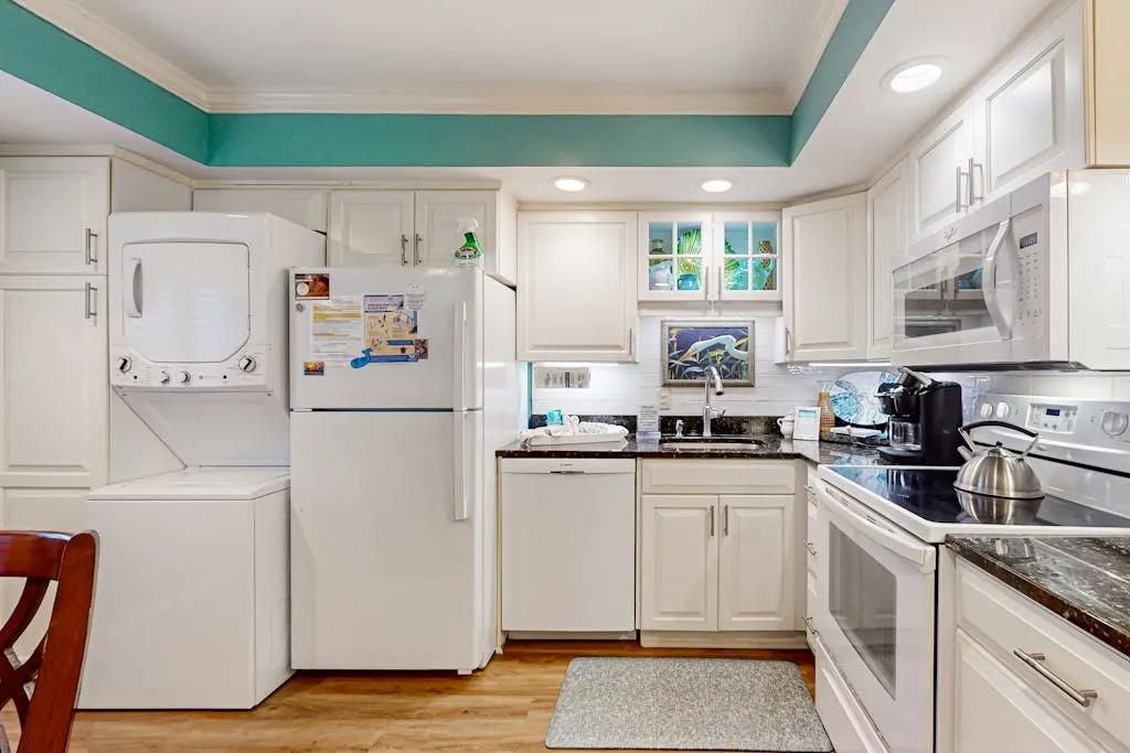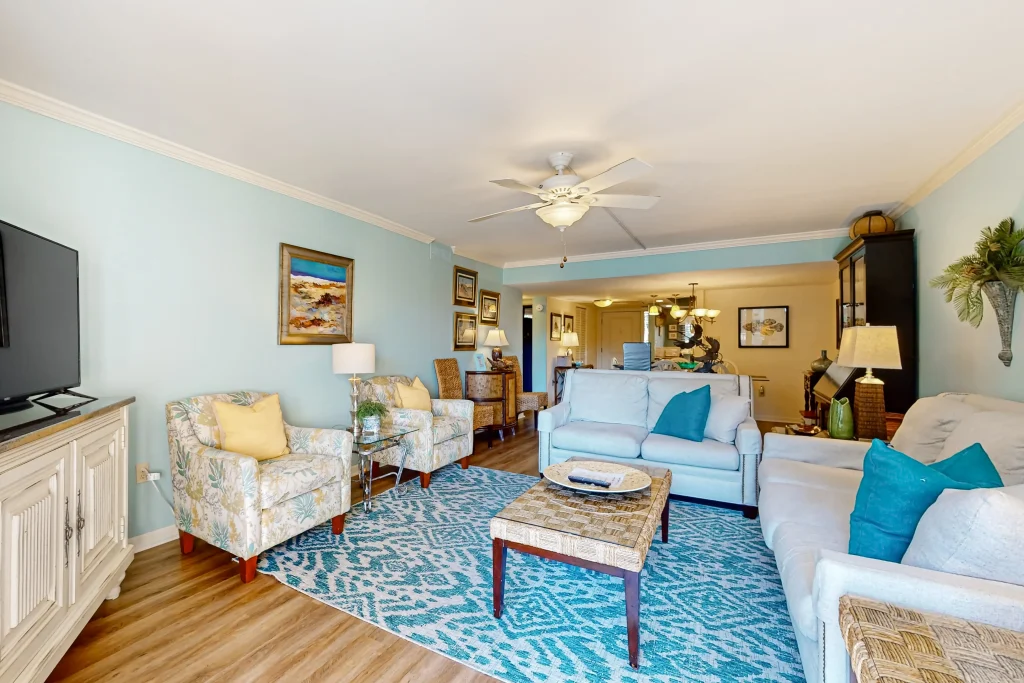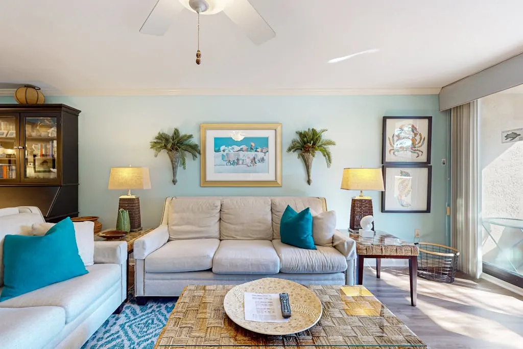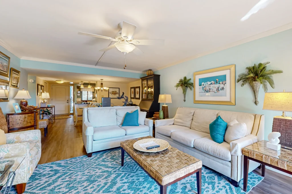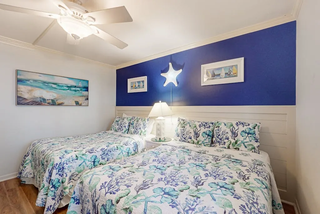 This well appointed two-bedroom property is located on the first floor at Island Club. It features a lagoon view from your private deck. The fully equipped kitchen opens to the living room, which is furnished with a 36′ flatscreen TV and comfortable furniture, perfect for entertaining the whole family. Both the kitchen and bathrooms have been recently updated, so you can enjoy your vacation at the beach to the fullest.