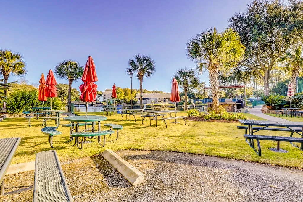 The Island Club is an oceanfront villa complex located next to the Westin Resort Hotel, in the Folly Field area. Walkways lead through wonderfully landscaped grounds. Enjoy spending time at the beach and exploring the amenities available to you, including nine tennis courts, a fitness center, basketball courts, fishing lagoons, a zero-entry children’s pool with a mushroom fountain, hot tub, a tanning shelf, a large lap pool, and bike rentals. In addition to the sports complexes, the Island Club is outfitted with charcoal and gas grills on site, a picnic area by the beach with lawn games like corn hole and lawn golf, as well as a children’s playground.