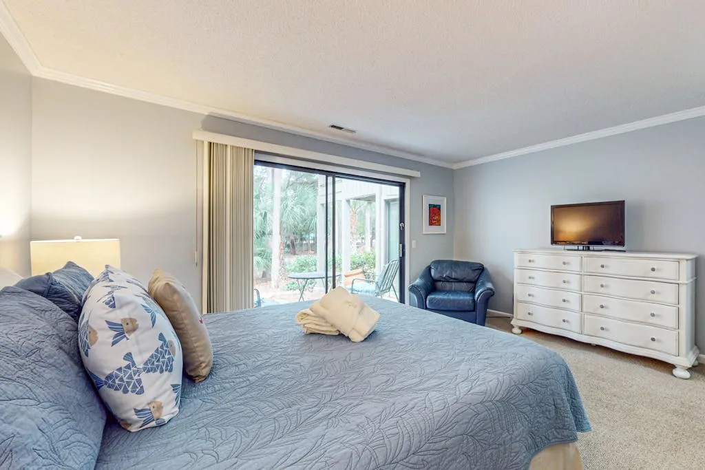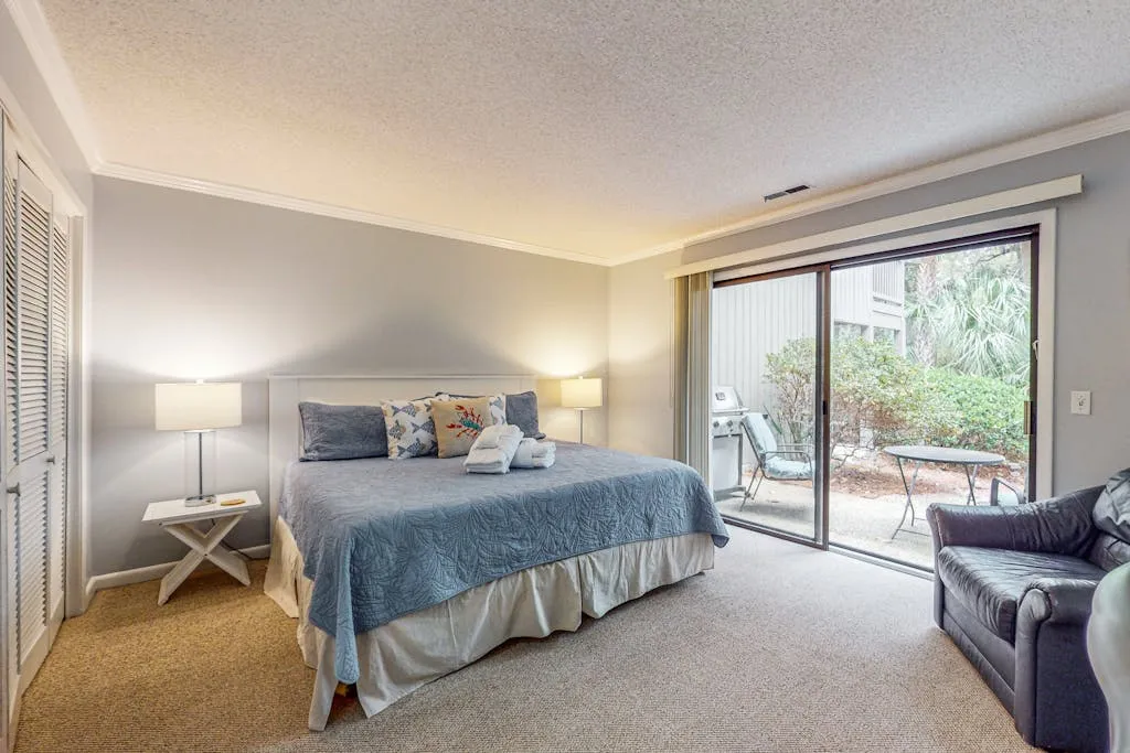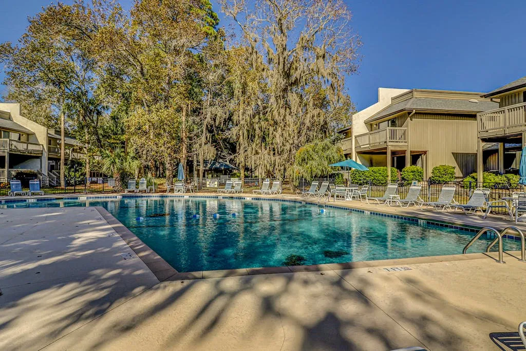 Conveniently located just a mile-and-a-half away, the Coligny Plaza Shopping Center and Pope Avenue offer a variety of dining options, shops, and grocery stores for your convenience. Whether you’re looking to enjoy a round of golf on-site, take a dip in the outdoor pool, or simply relax on the balcony with a cup of coffee, this villa has everything you need for a memorable stay.