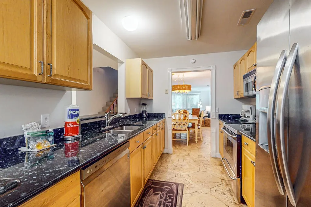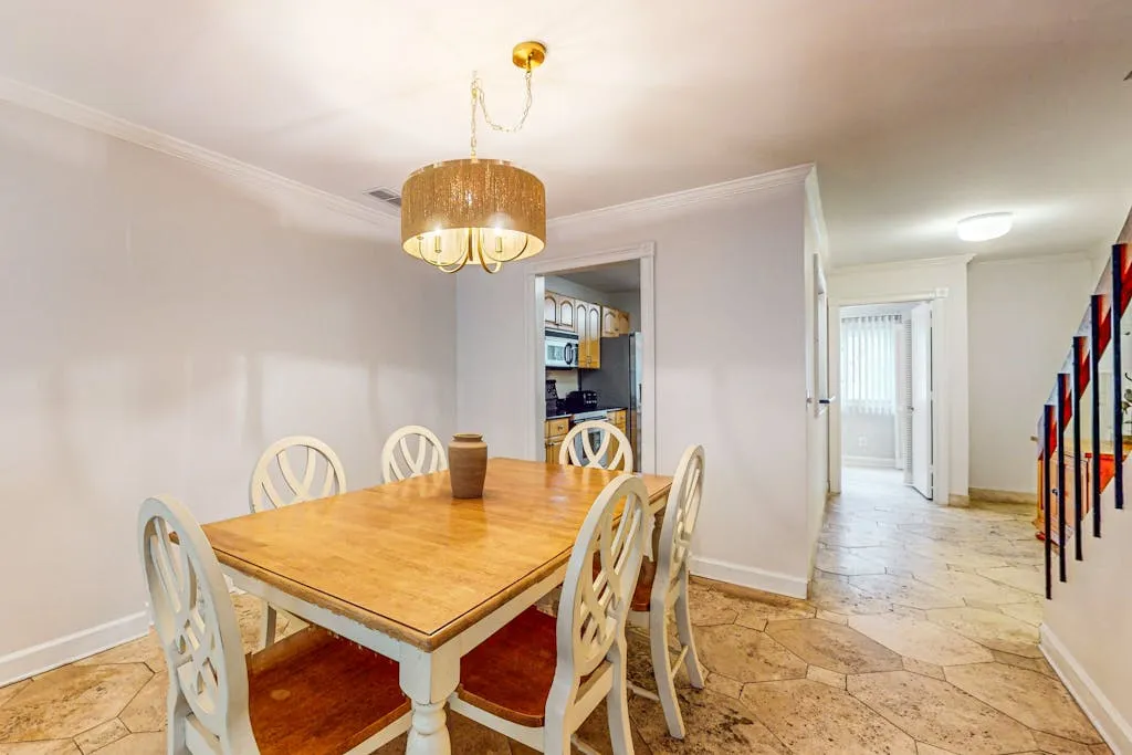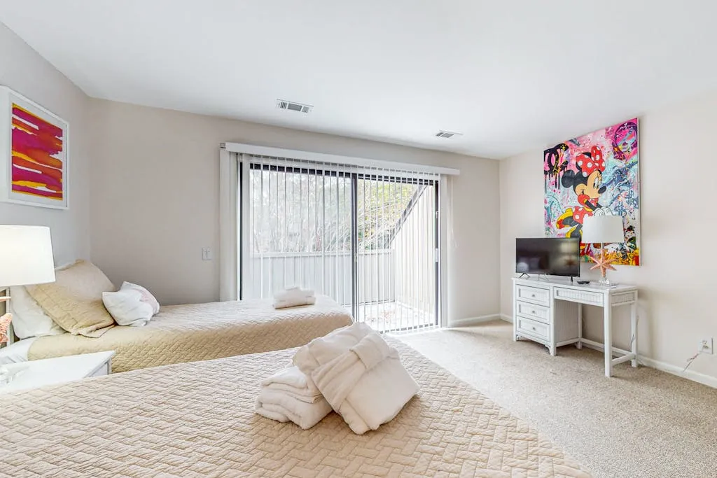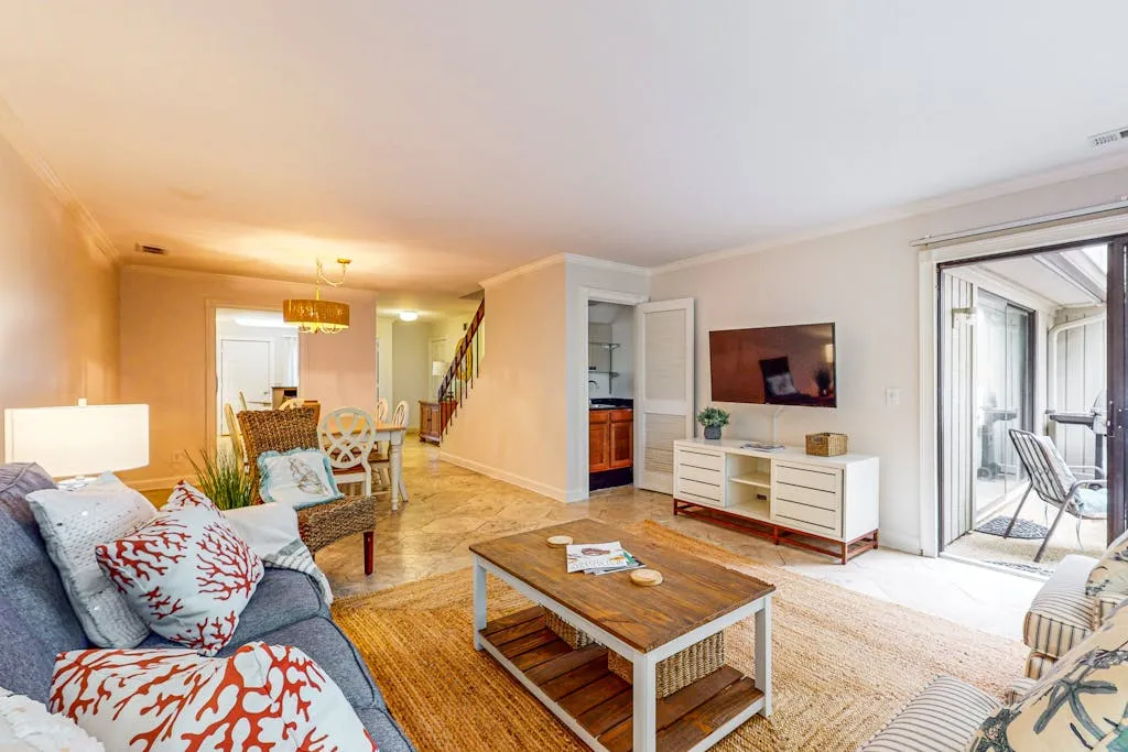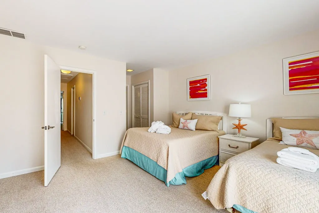 This cozy condo features a spacious living room where you can relax and unwind after a day of exploring the nearby beach access or biking and walking trails. Inside, you’ll find comfortable sleeping arrangements with a king bed, queen bed, double bed, and twin bed, ensuring a restful night’s sleep for everyone in your group.
